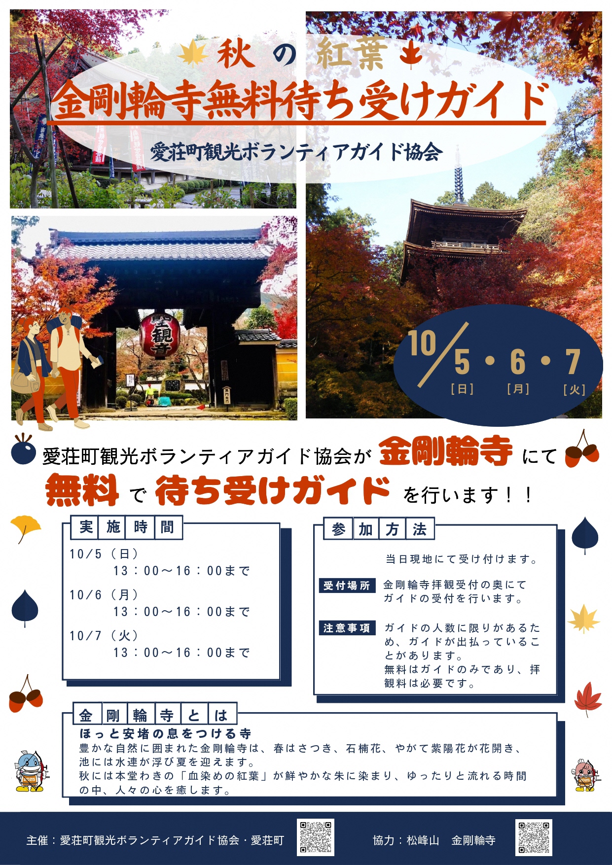 10月5日・6日・7日の3日間にわたり愛荘町観光ボランティアガイド協会主催の「金剛輪寺無料待ち受けガイド」を実施いたします。
