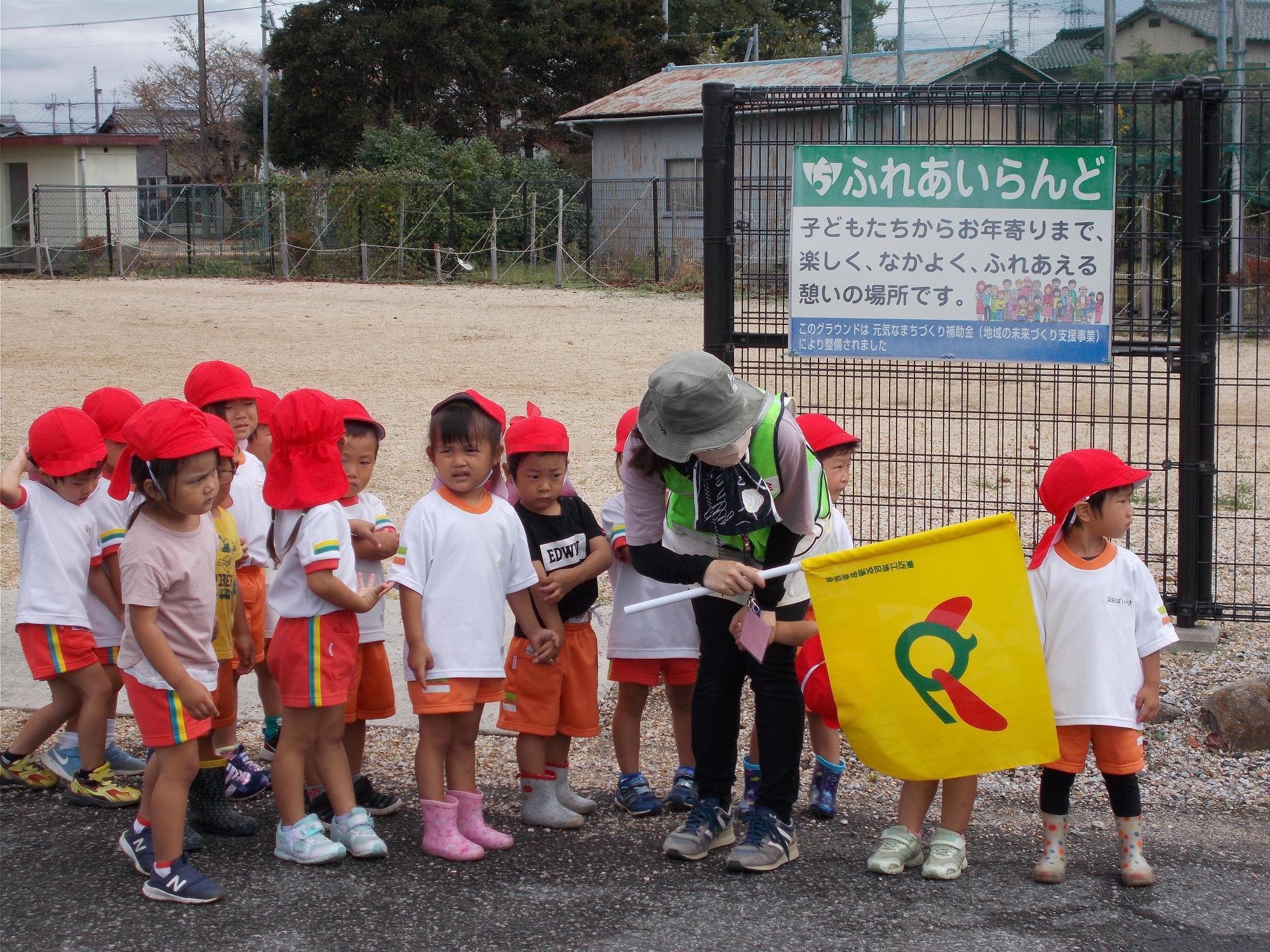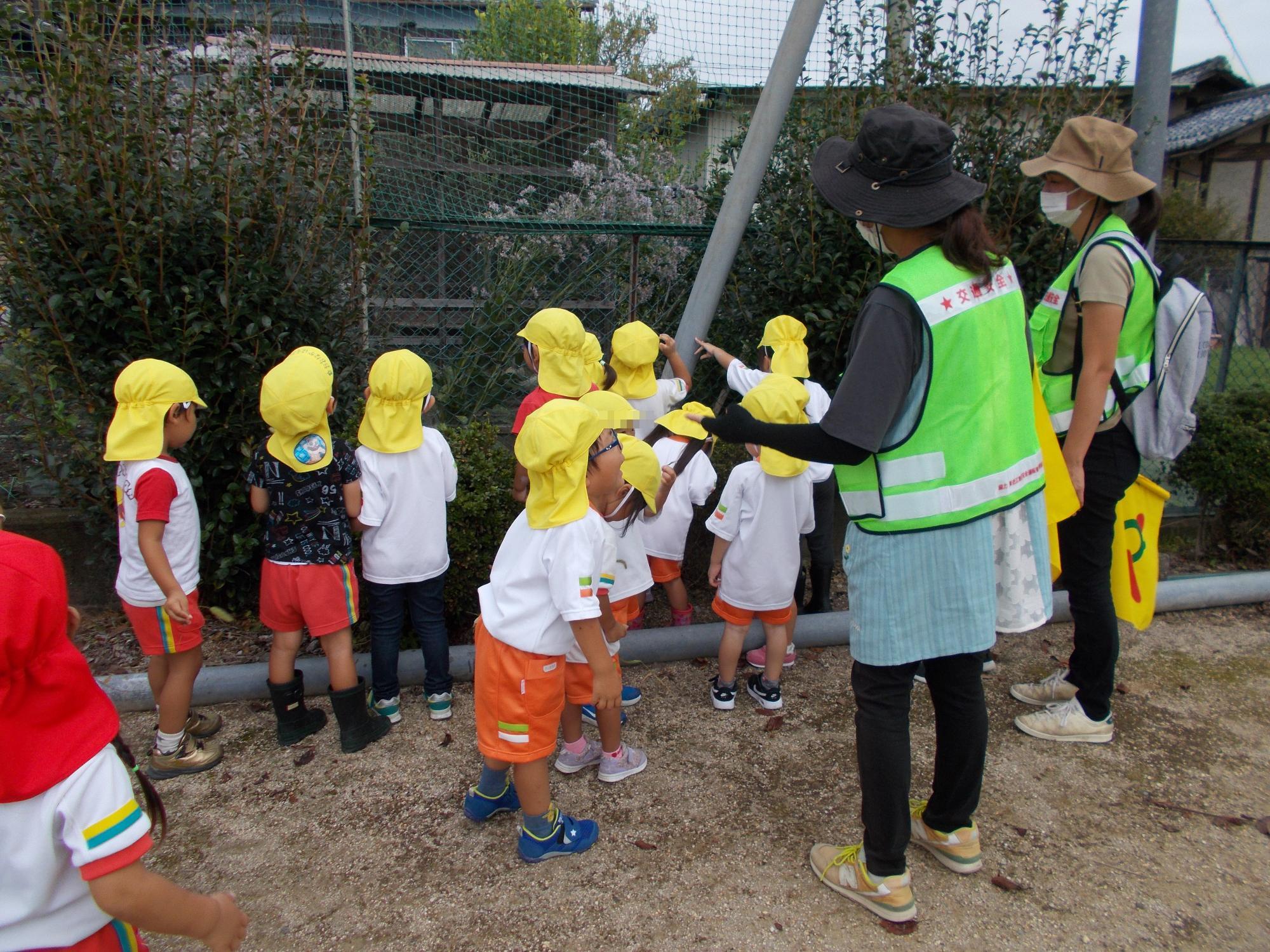 10月12日に、年少の子ども達が市の「ふれあいらんど」に散歩に出かけました。畑や田んぼに植えられた作物を見たり,草花や魚を見たり。「あっ新幹線!」「近江鉄道がもうすぐ来るよ!「ひっつき虫!」何を見ても興味津々の子ども達でした。