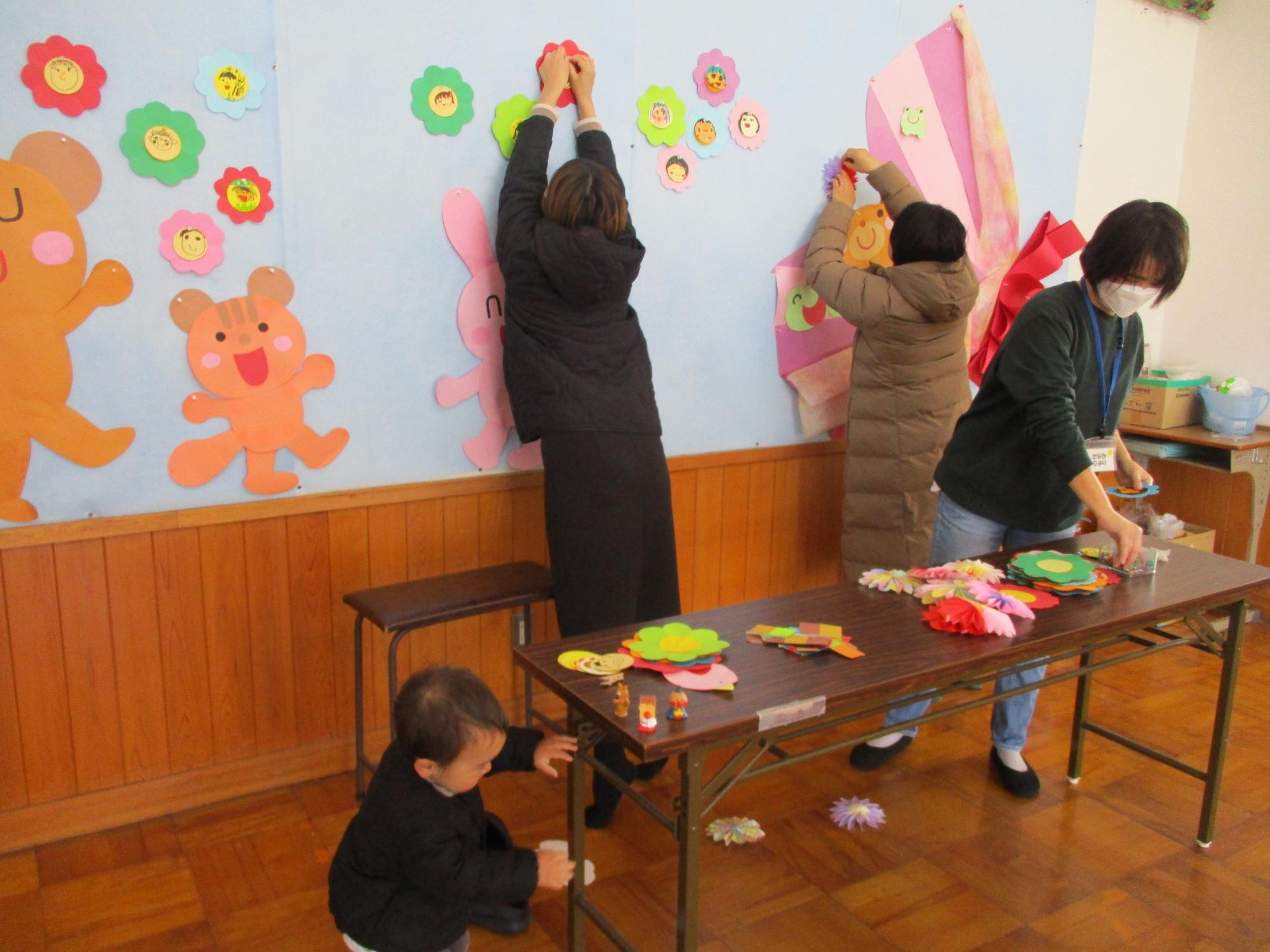 壁面にみんなの笑顔の花が咲きました♪ 更新日:2024年03月06日 壁面ボランティアの方々が今年度最後の活動をしてくださいました。 今回は年長児の子どもたちが描いた顔が花束の花になりました。卒園まであと少し、幼稚園でたくさんの思い出を作ってほしいと思います。