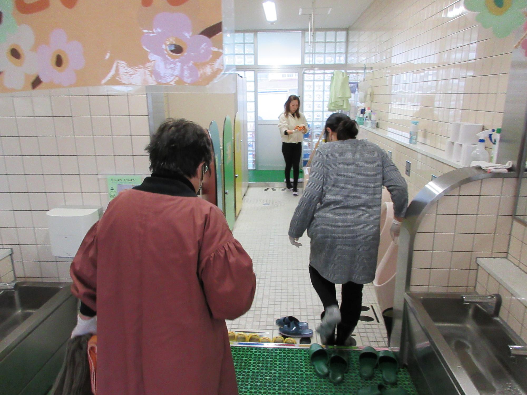 トイレ掃除のボランティア活動 更新日:2024年03月21日 3月12日にトイレ掃除のボランティア活動があり地域からも参加をしてくださいました。また、同時に保護者ボランティアの方々がままごとセット作りもしてくださいました。 卒園式に向けて年長のトイレを中心に掃除をしてくださり、子どもたちから自然に「ありがとう」と感謝の言葉を聞くことができました。