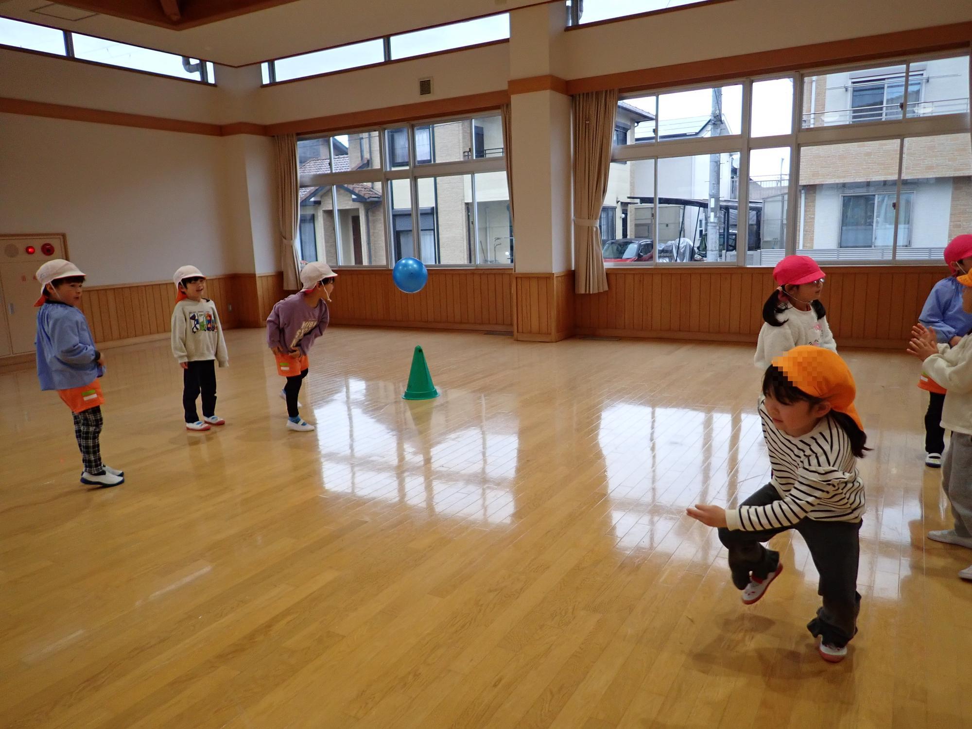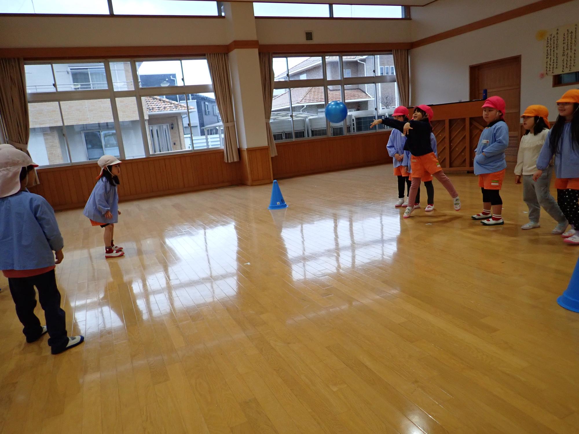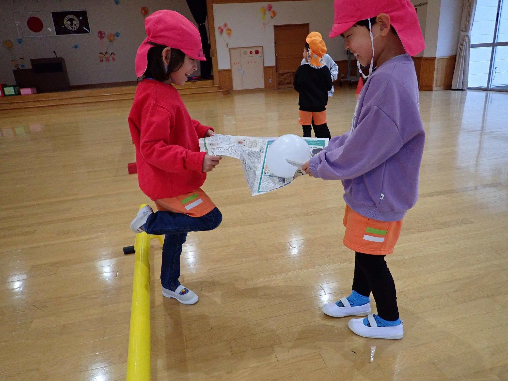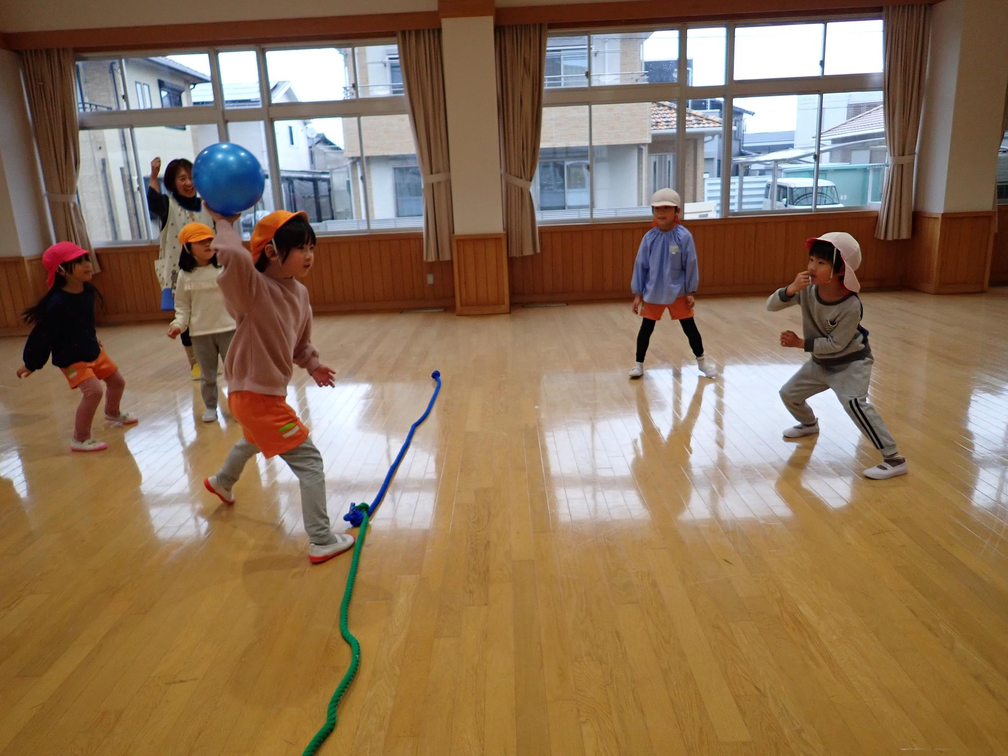 みんなで遊んだよ!【年長組】 更新日:2026年03月26日 雨天のためお別れ遠足は中止となりましたが、遊戯室でいろいろなゲームをして遊びました。猛獣狩りや風船運びリレー、ドッジボールとたくさんの遊びを満喫した子ども達です。
