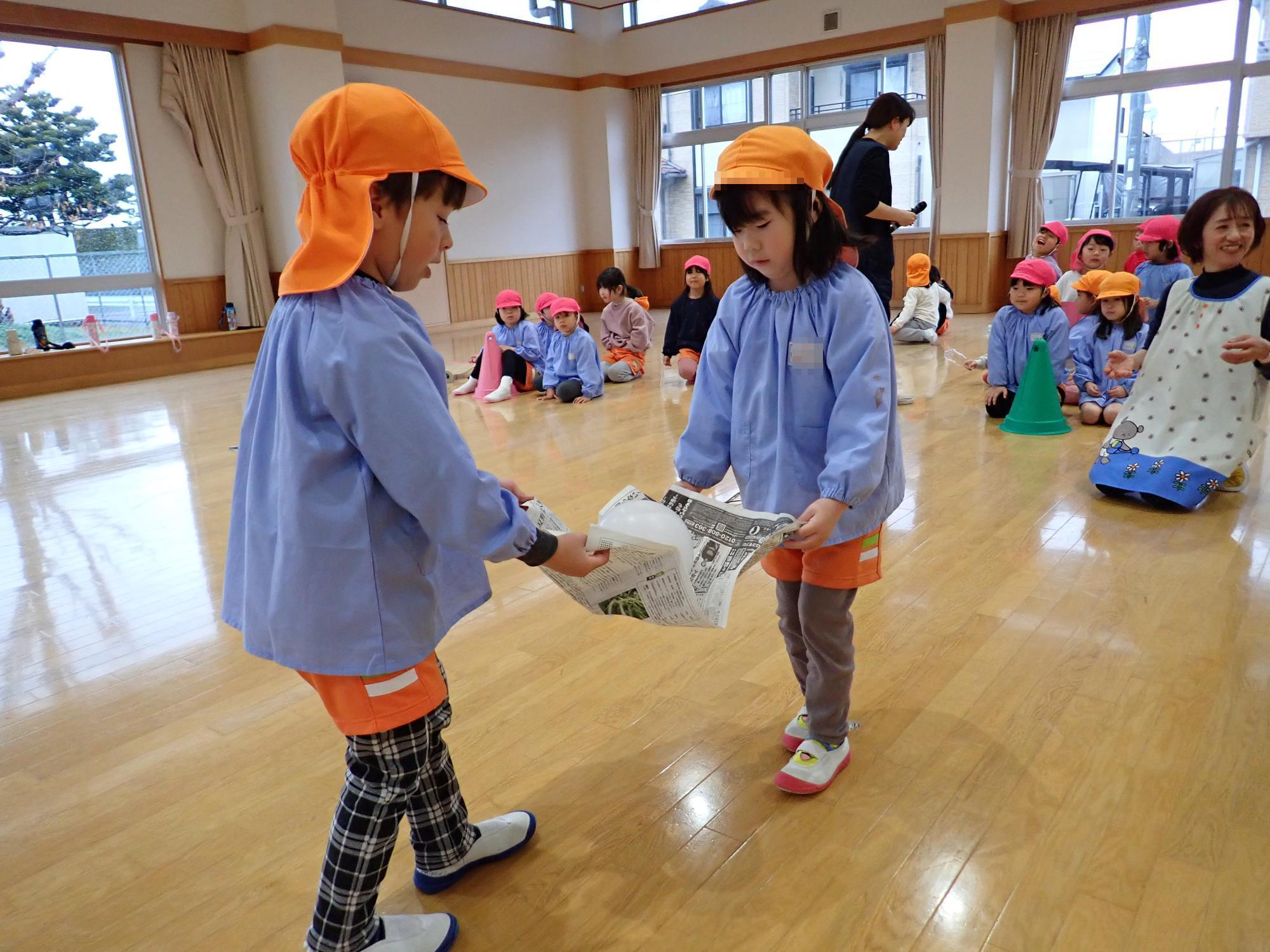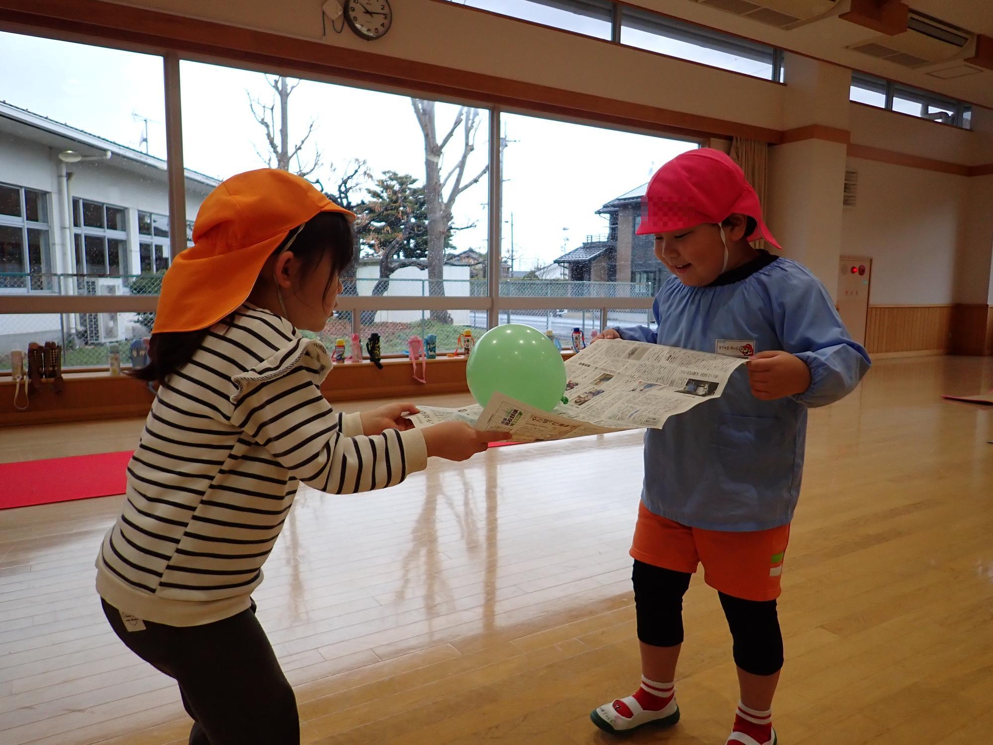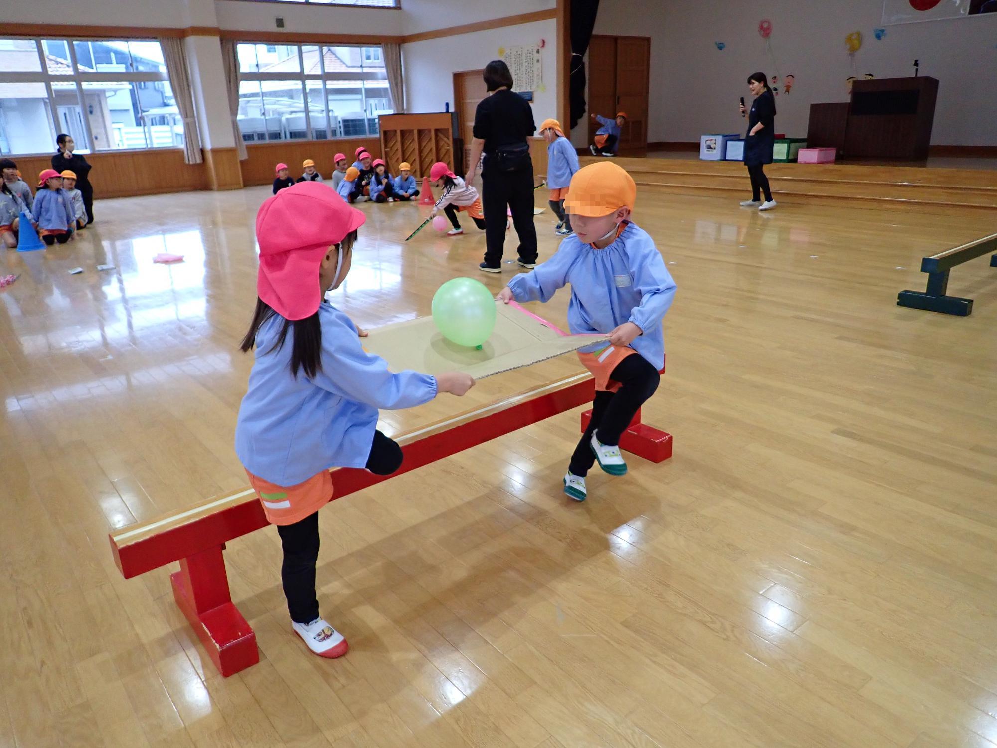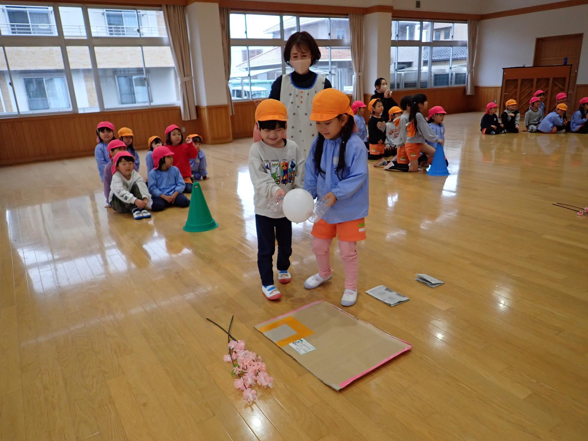 みんなで遊んだよ!【年長組】 更新日:2026年03月26日 雨天のためお別れ遠足は中止となりましたが、遊戯室でいろいろなゲームをして遊びました。猛獣狩りや風船運びリレー、ドッジボールとたくさんの遊びを満喫した子ども達です。