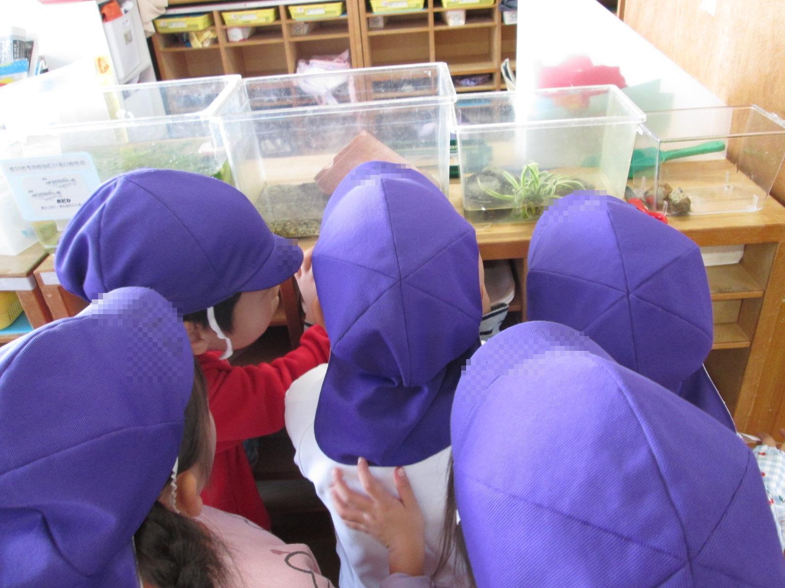 夏から飼育していたザリガニに赤ちゃんが生まれ、小さな命を見つめる子ども達の目はとても優しかったです。