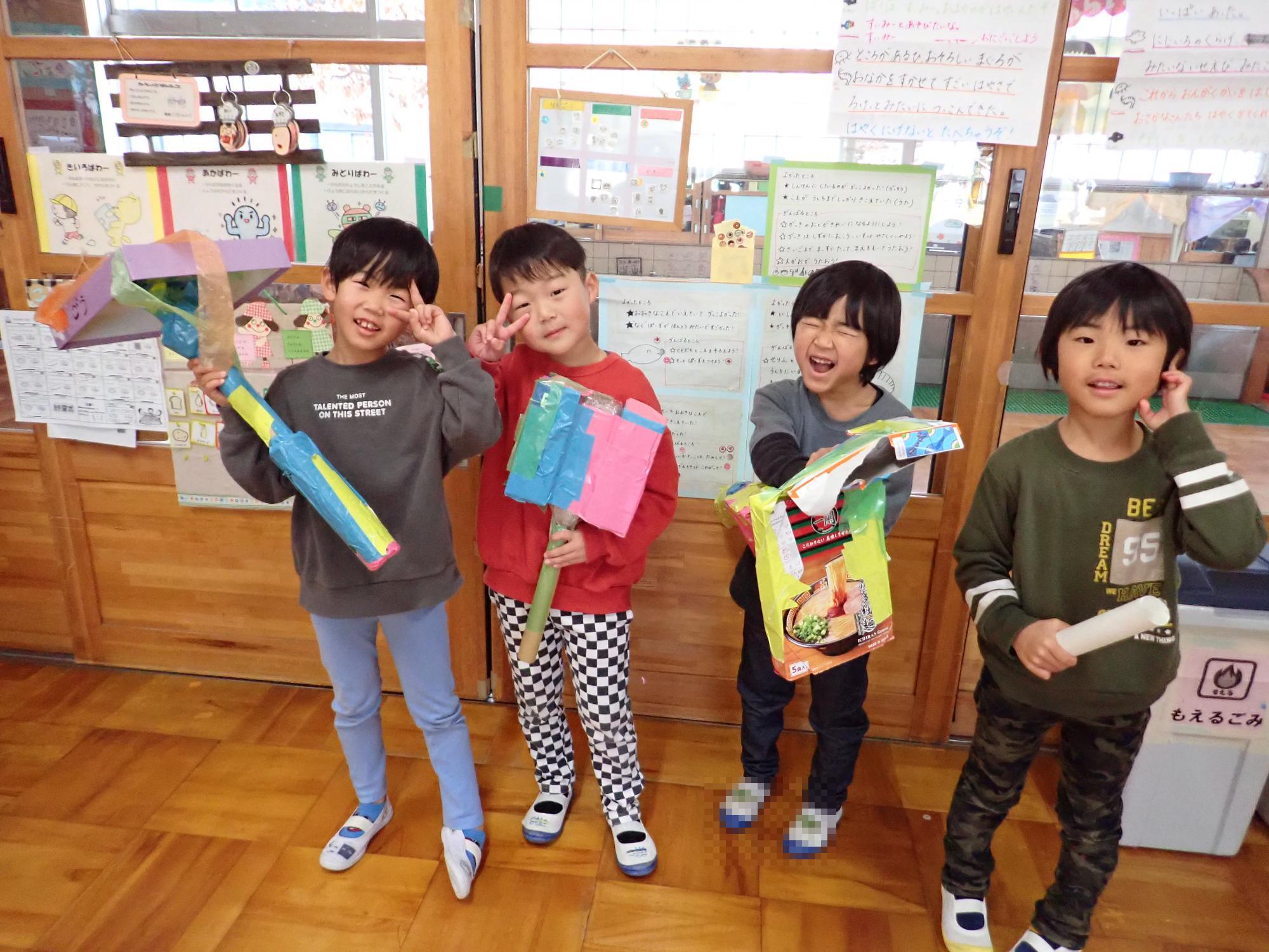また、室内で制作遊びや細かいビーズを使ったネックレス作りをする子の姿もあります。遊びの中で友達としぜんと教え合ったり、会話を楽しんだりと関わりが深まっている姿が感じられます。残すは、あと3学期となりました。友達とたくさんの思い出を作ってほしいです。