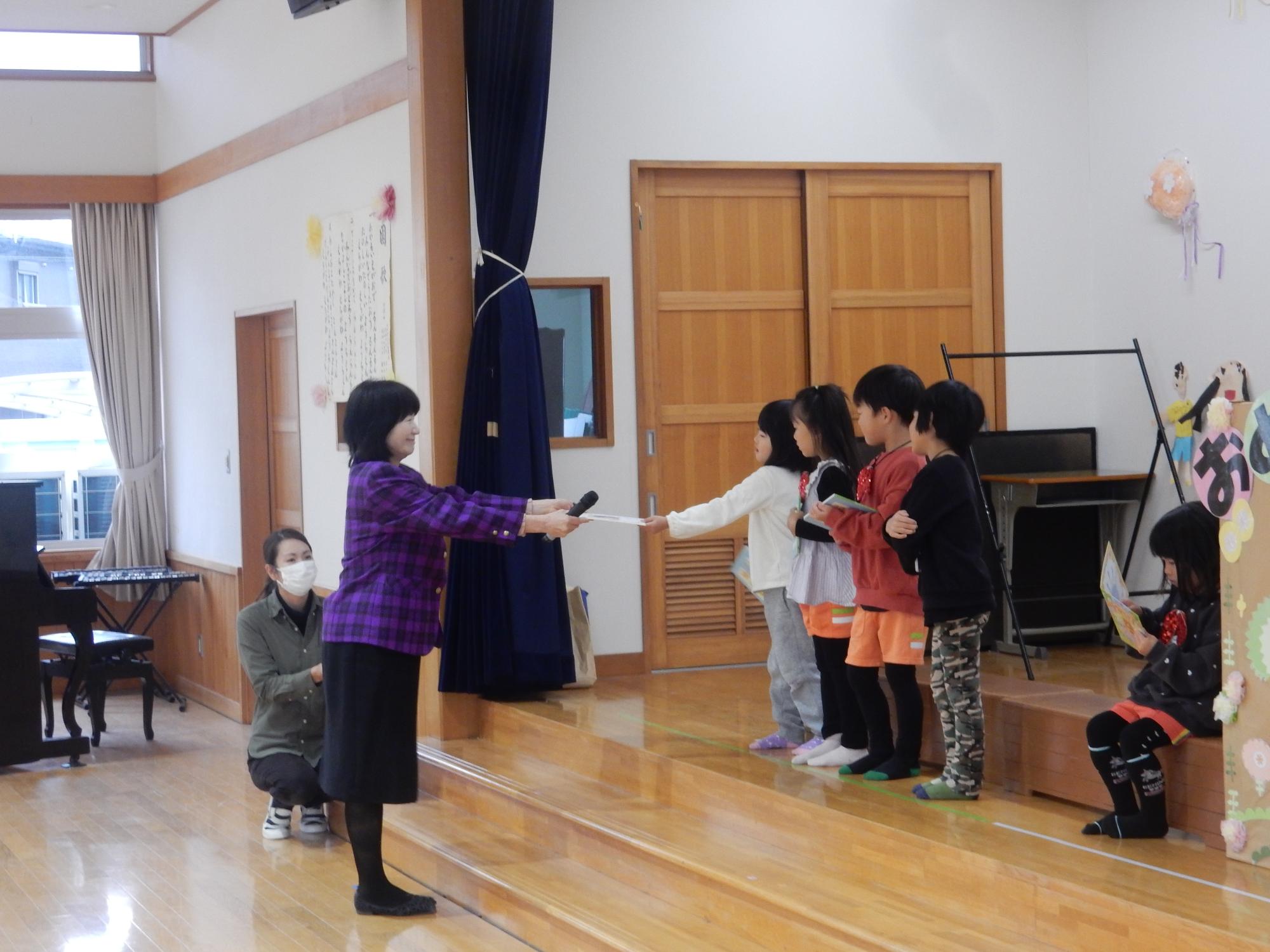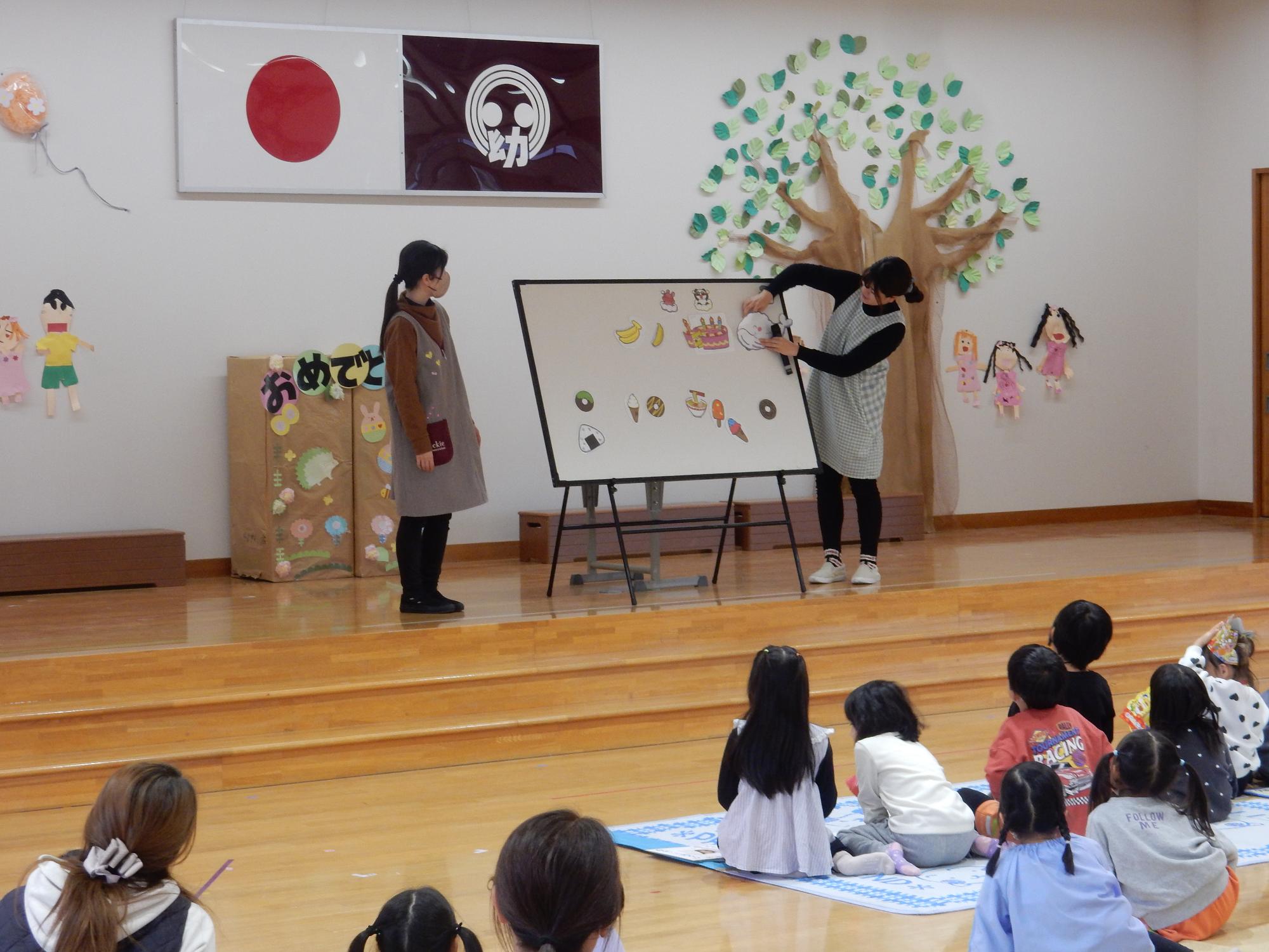 11月26日に11月生まれの友達の誕生日会がありました。一人ひとりのインタビュー、プレゼントのお祝いの後は年中組の先生からのパネルシアターがありました。