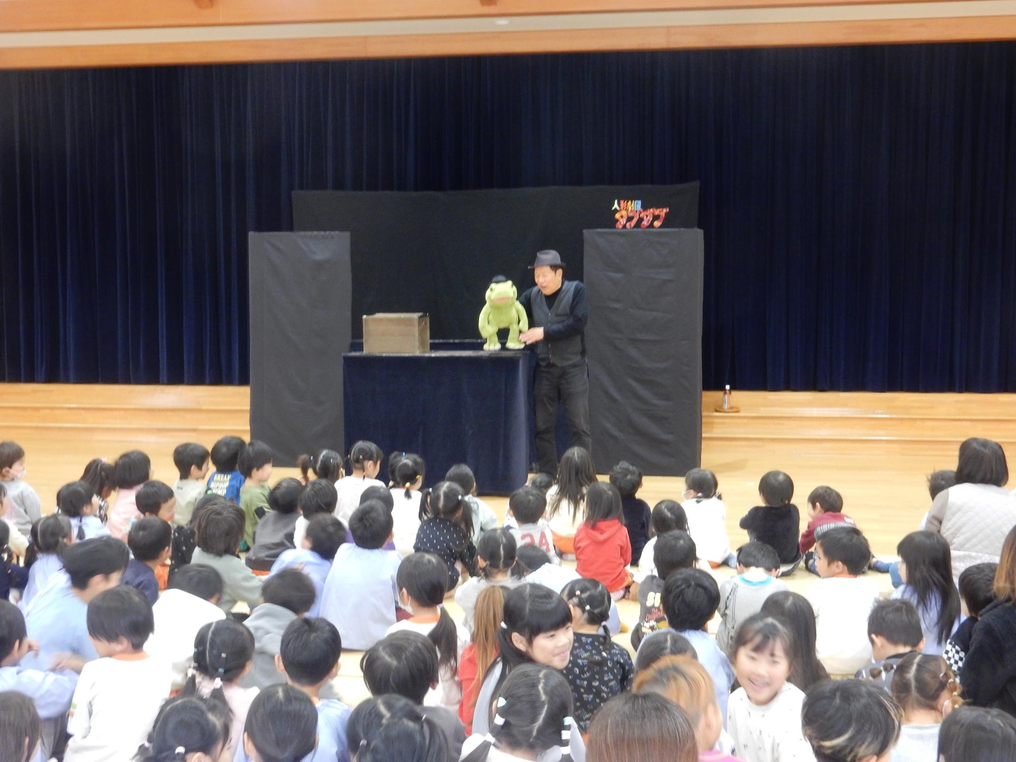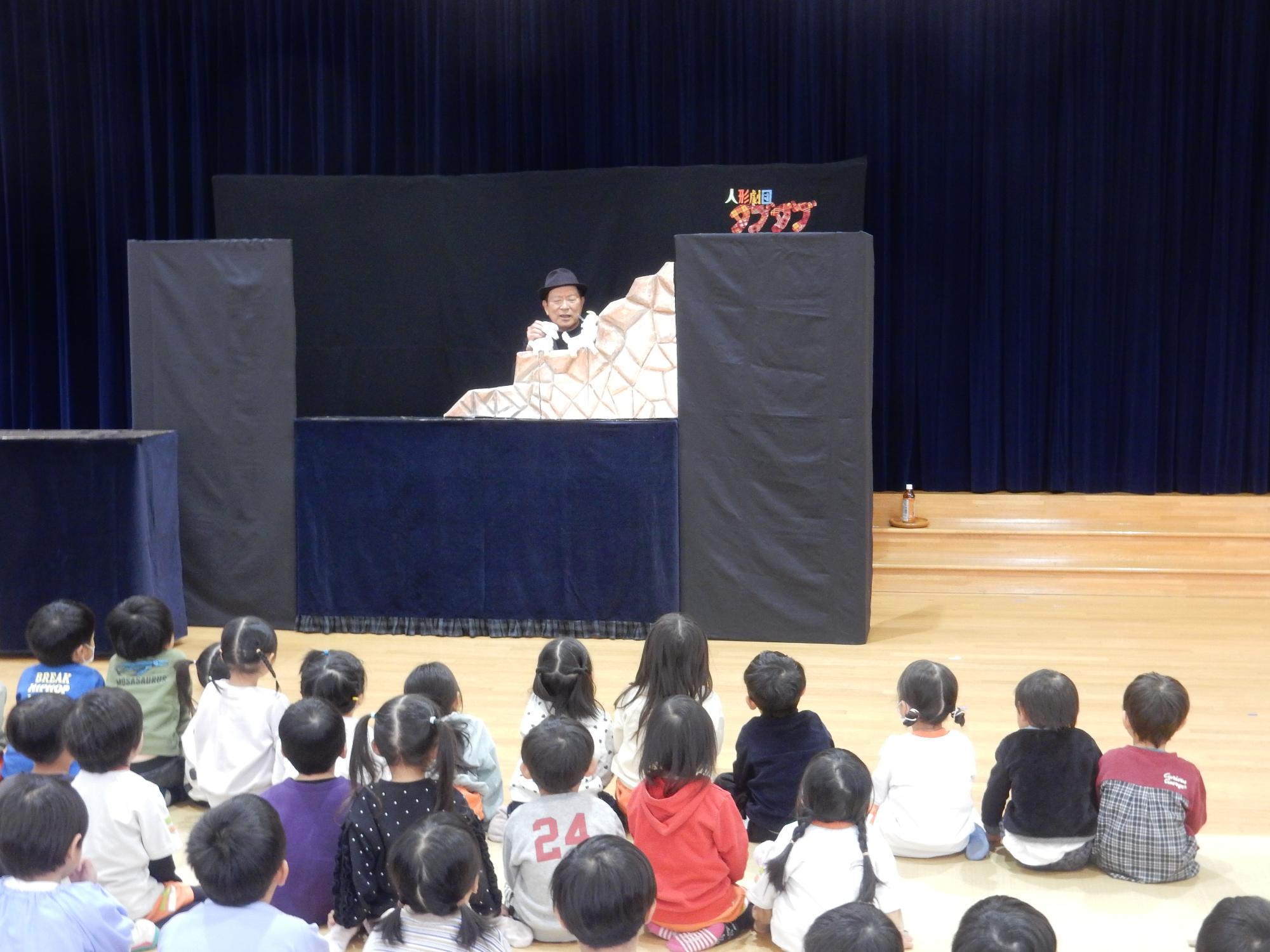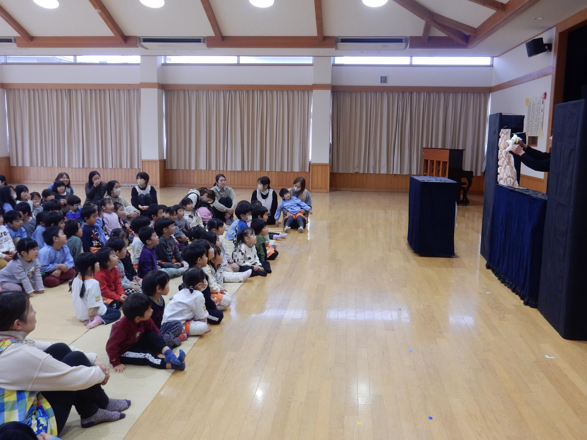 12月11日に「人形劇団ダブダブ」による人形劇鑑賞会がありました。人形の動きや声色に子どもたちも釘付けでした。年少児から年長児までとても楽しそうに鑑賞していました。