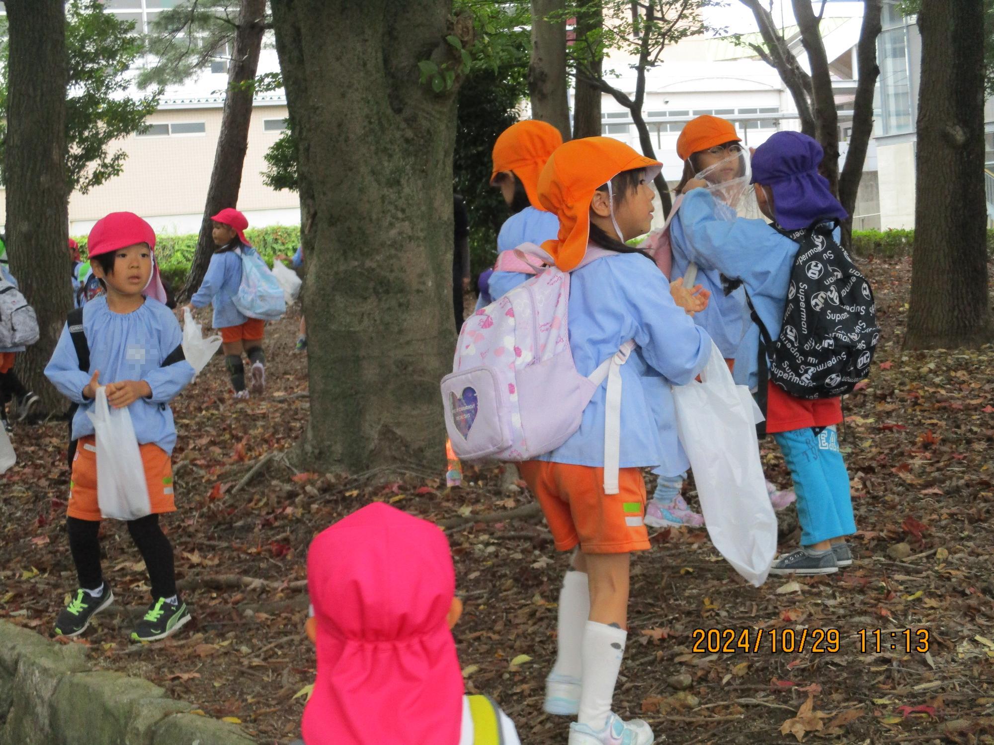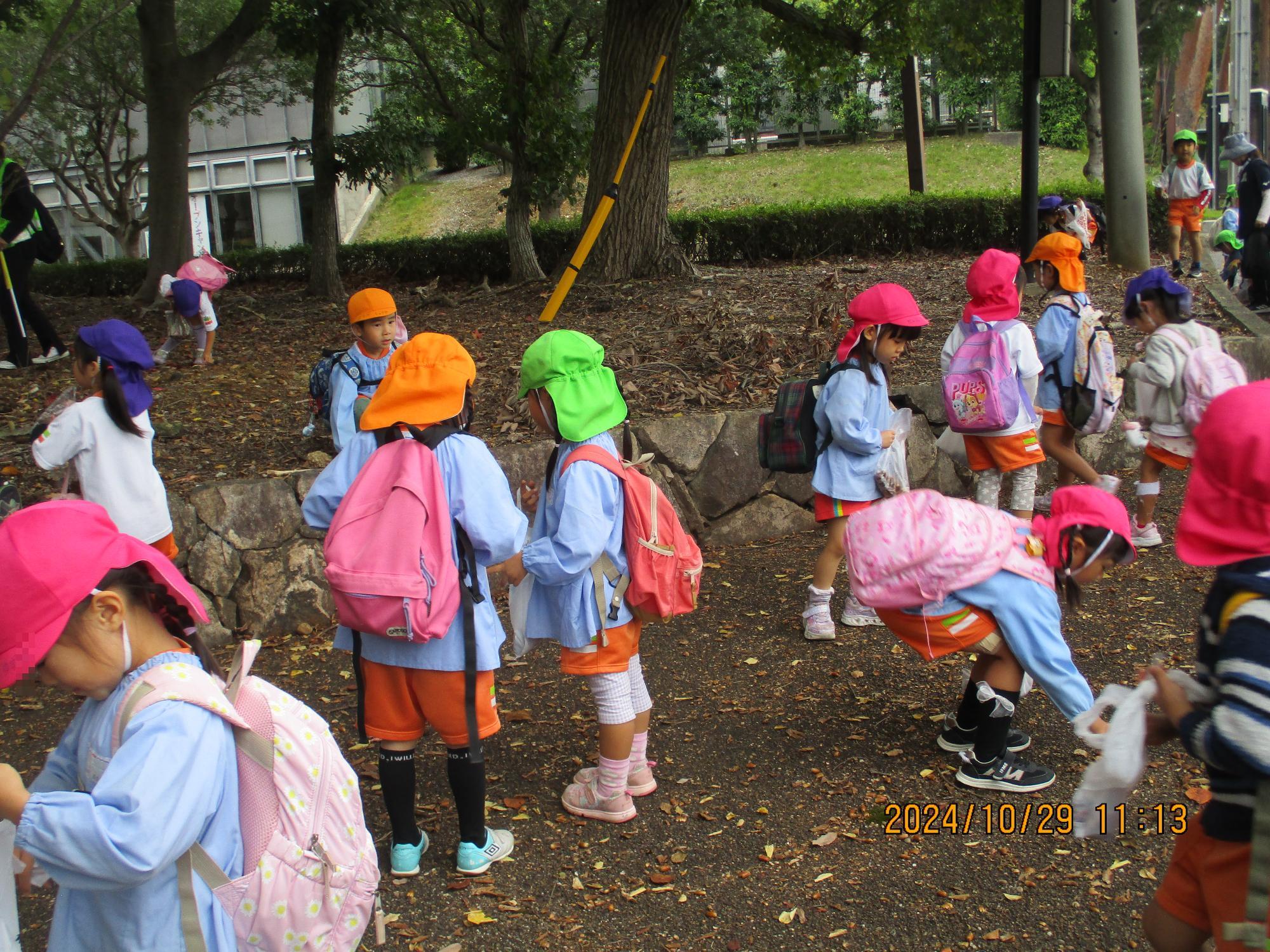電車内では外の景色を楽しんだり、「ガタゴト言うね」など友達とお話をしたりしながらマナーを守って乗車することができました。びわこ学院大学にお邪魔して、木の実や葉っぱなど秋探しを楽しみました。