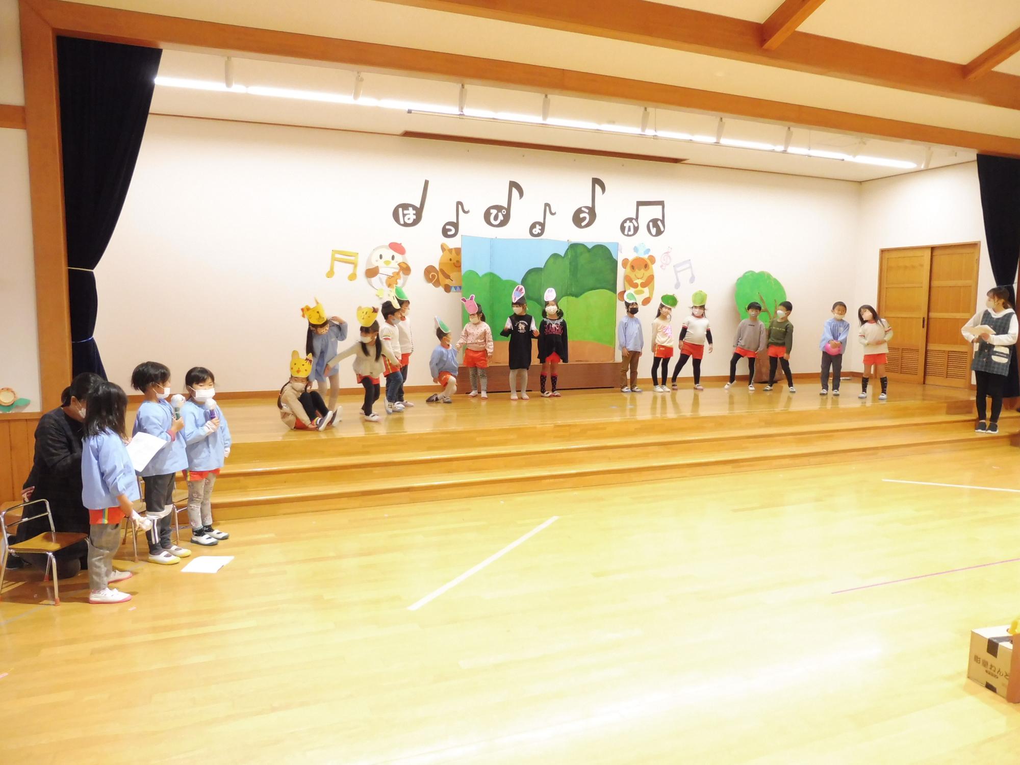 明日は予行会、写真のような制作遊びをしながらも、劇のセリフを子ども達で言い合っている姿があります。