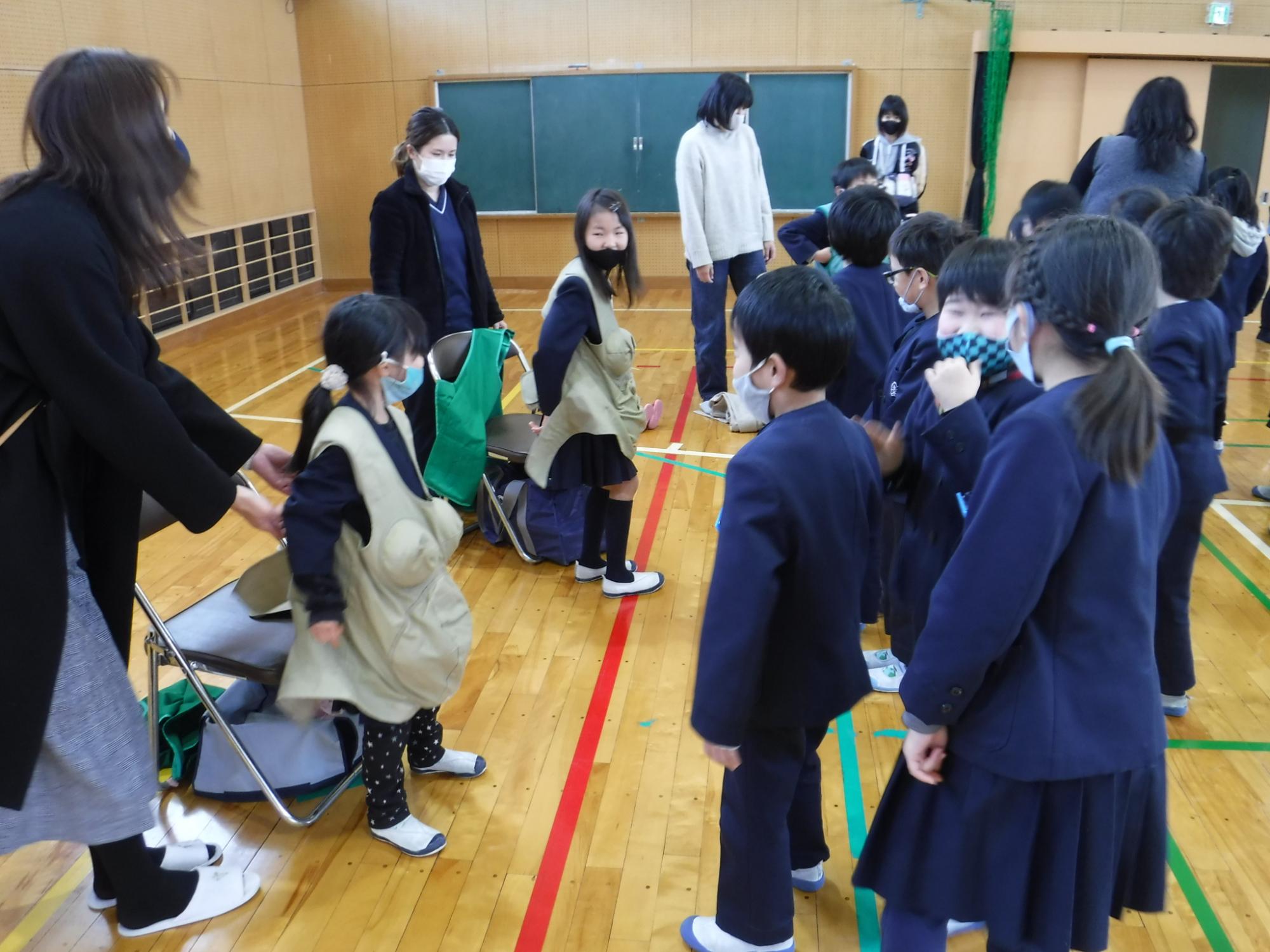 産道体験、心音を聞く体験、妊婦体験、赤ちゃんを抱っこしよう、の4つの体験をしました。