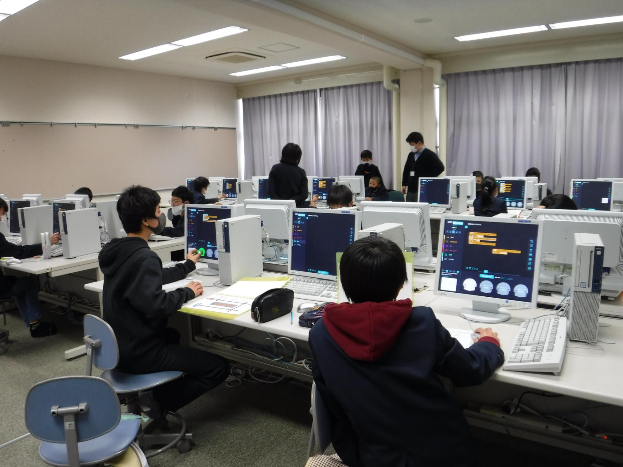 1月14日、小中連携授業として、6年生を対象にプログラミング学習が行われました。
