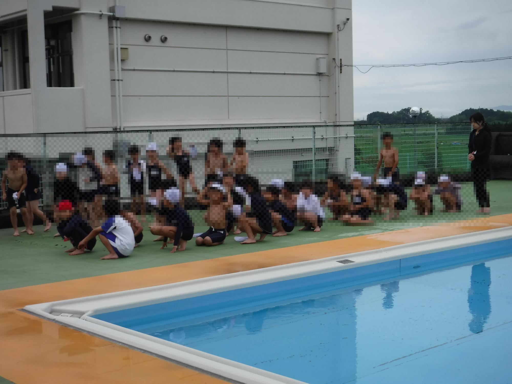 水泳の学習がスタートしました。水泳学習は安全第一であることや、そのための約束をしっかり聞いた後、準備体操をしてシャワーへ。にぎやかな声が響いていました。顔をつけたり、宝探しをしたり・・・。まずは水に慣れるように楽しんで学習しています。