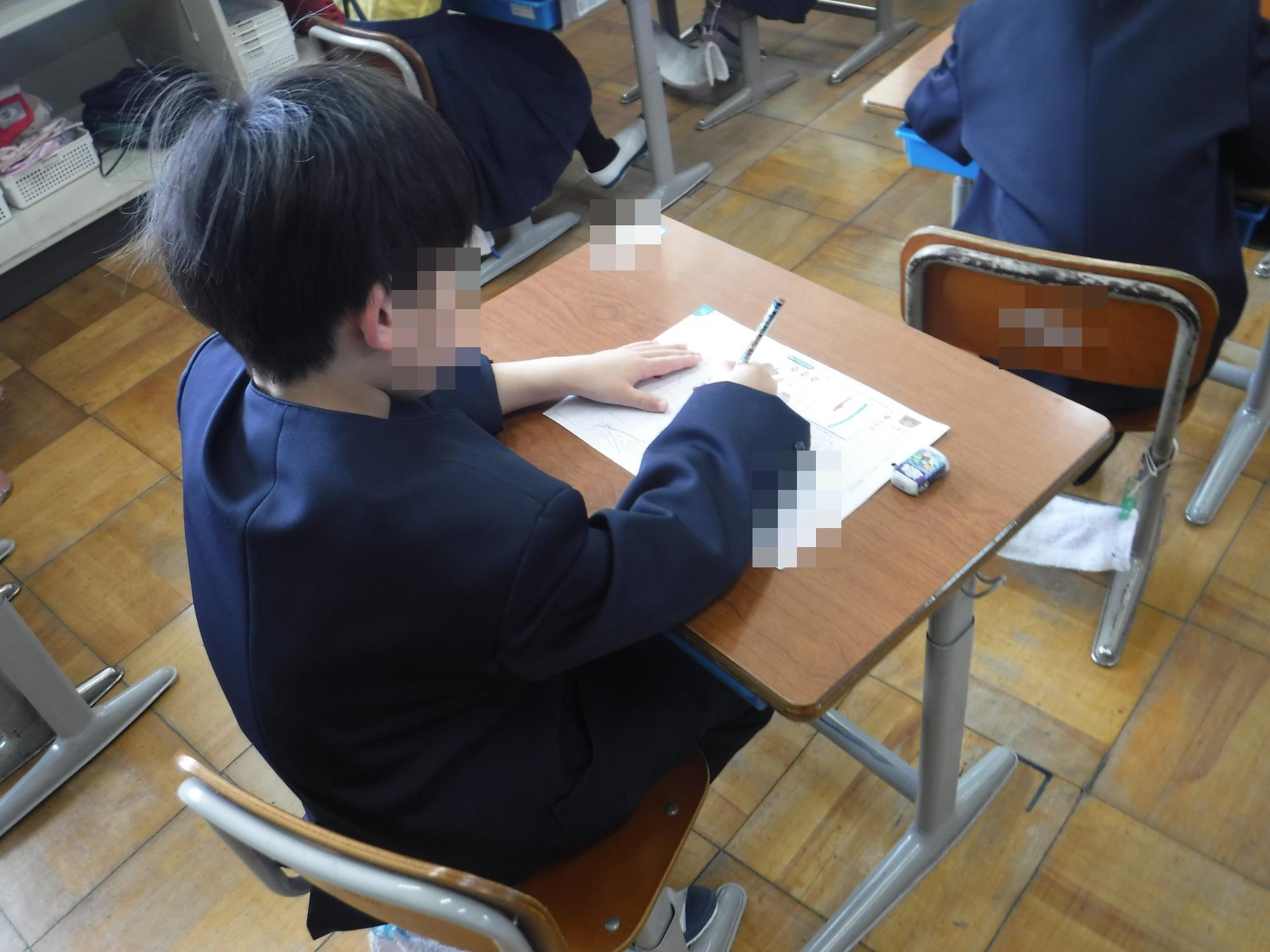 1年生では、ひらがなの学習が進んでいます。今日の文字は「り」。たくさんの「り」のつく言葉集めをしました。子どもたちはこういった学習の中で新しい言葉を知ります。自分の名前も最初に比べると字形を整えて書けるようになってきました。名前にも花丸をもらってうれしそうな表情が見られます。一つひとつ丁寧に学習を進めています。