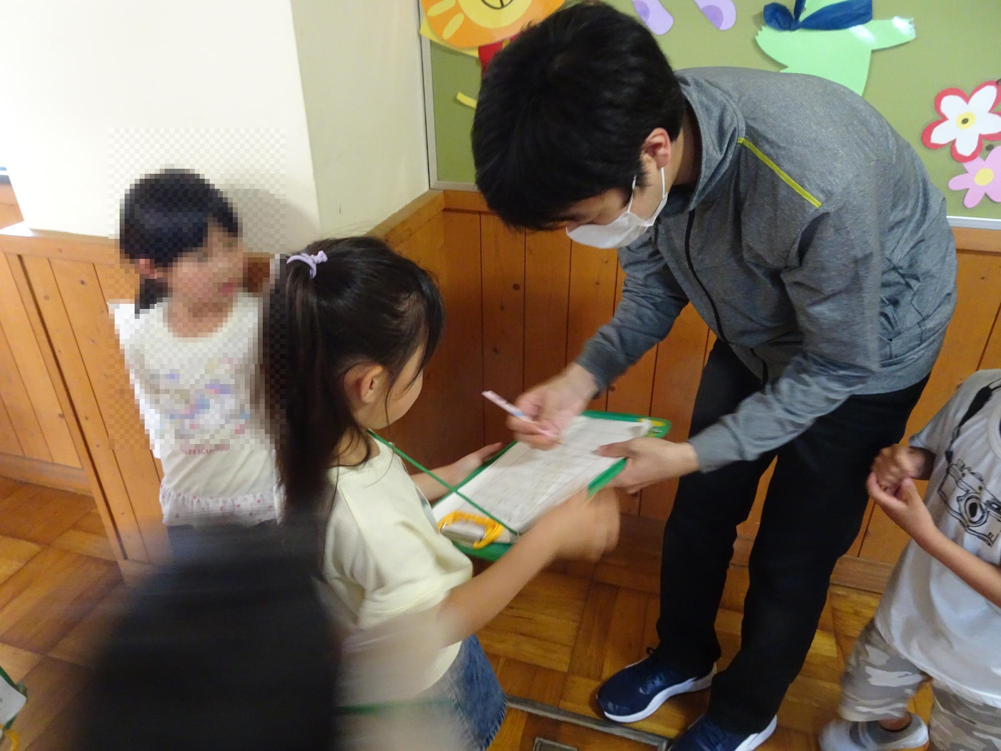 1年生は、生活科の学習で、「先生となかよくなろう」という学習をしており、学校の色々な先生に出会って、サインをもらう活動を休み時間に楽しそうに頑張っています。「しつれいします。わたしは〇〇です。せんせいのなまえをおしえてください。」などと、しっかり自己紹介とお願いの言葉を言って先生にサインをもらう姿に感心しています。サインが増えるたびにとてもうれしそうに、そして先生となかよくなっていく1年生の子どもたちです。