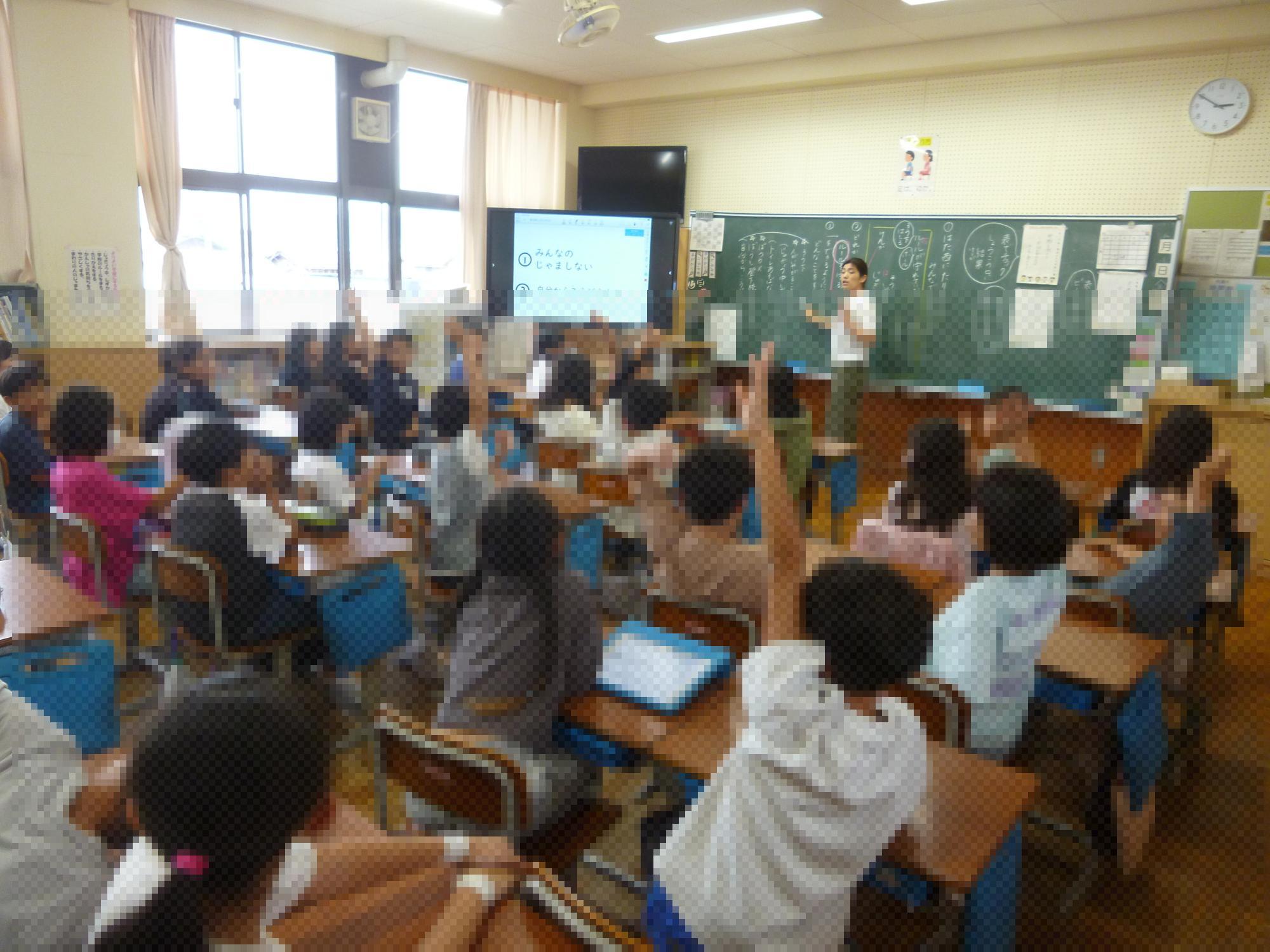 今年から、毎月の学校生活目標を順番に学級で決めてもらっています。今日の6時間目に10月の生活目標を決める3年生がどんな目標にするか話し合いをしていました。まず、今の学校の課題をグループごとに話し合いました。グループで出た意見をICTを活用しながら共有し、どんな目標にすれば、さらによい学校になるのかを話し合っていました。今日の結果は、10月15日の全校ミーティングで全校児童に発表してもらいます。