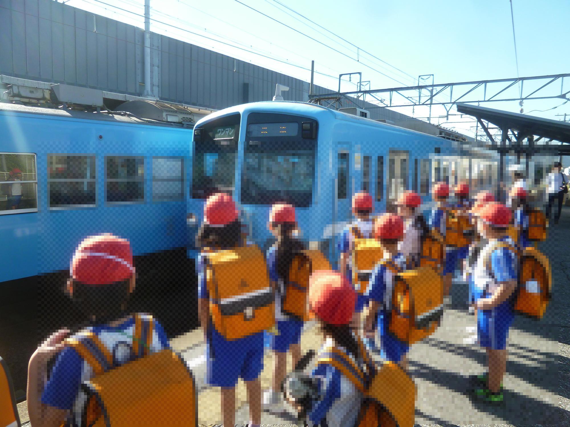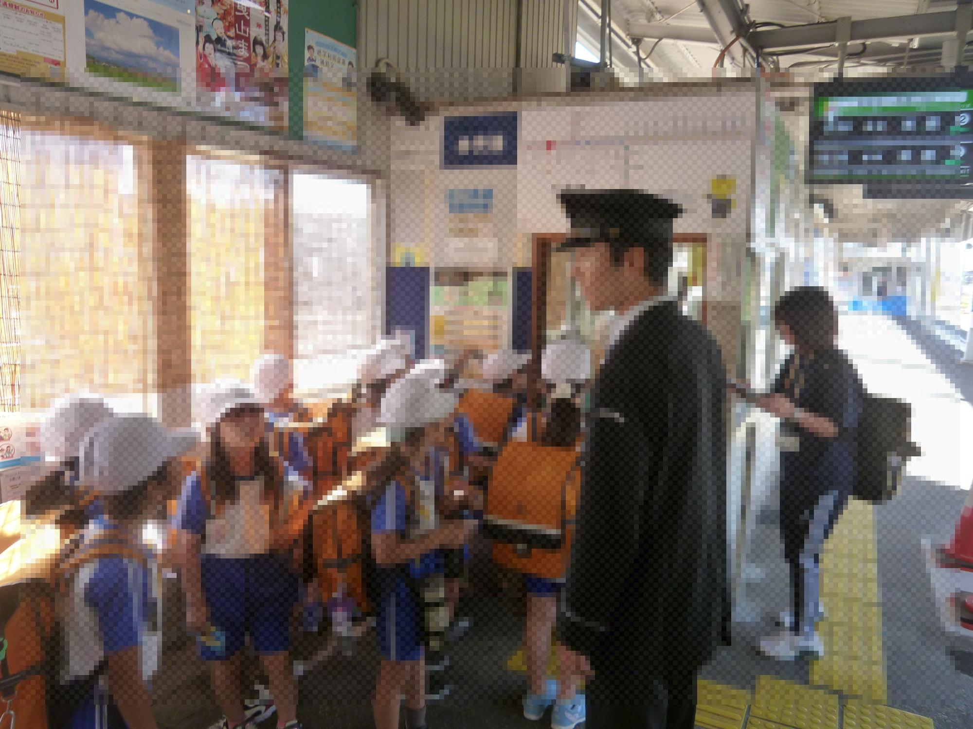 今日、2年生は校外学習でヤンマーミュージアムへ行きました。まず、愛知川駅から彦根駅まで電車に乗りました。初めて電車に乗る児童も何人かいて、車窓から見える景色を楽しみながら、電車の中での時間を過ごしました。彦根駅に着くと、駅員さんから電車でのマナーについて教えて頂きました。その後、一人ずつ、券売機で切符を買う体験もしました。今回の切符はお土産として持って帰っています。今日の記念にしてください。ヤンマーミュージアムでは、館内のアスレチックや足湯を楽しんだ子どもたち。たくさんの思い出ができた一日でした。