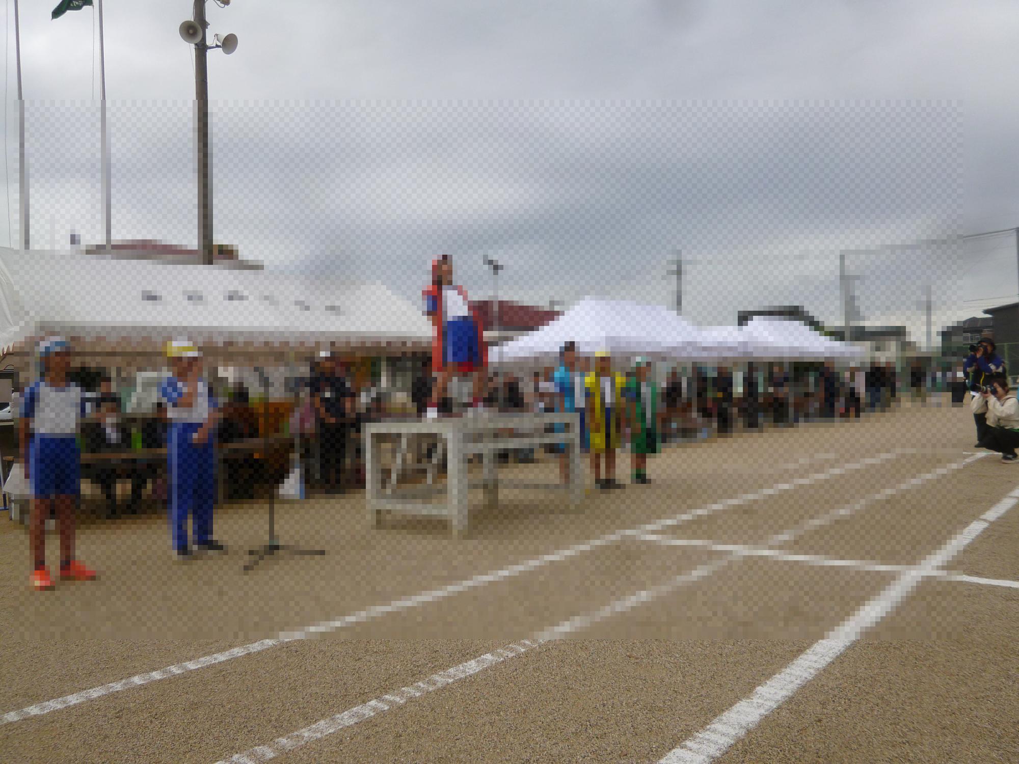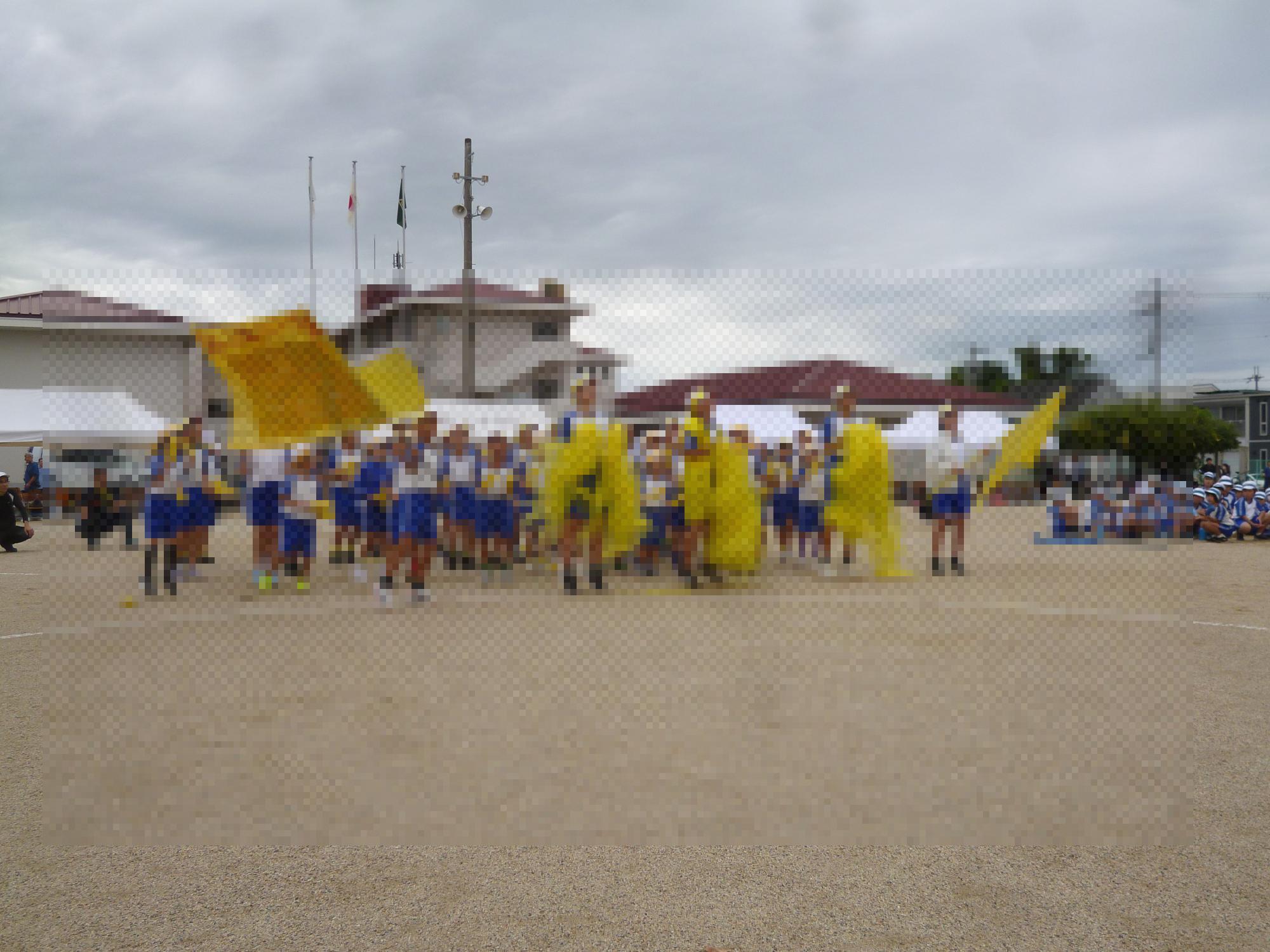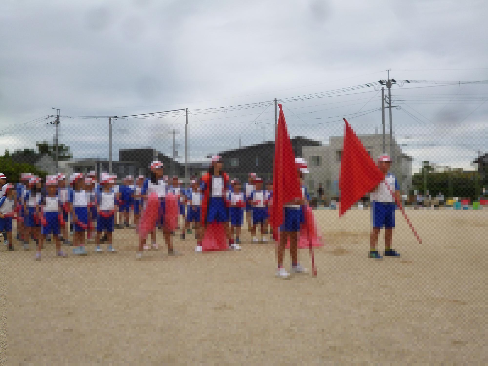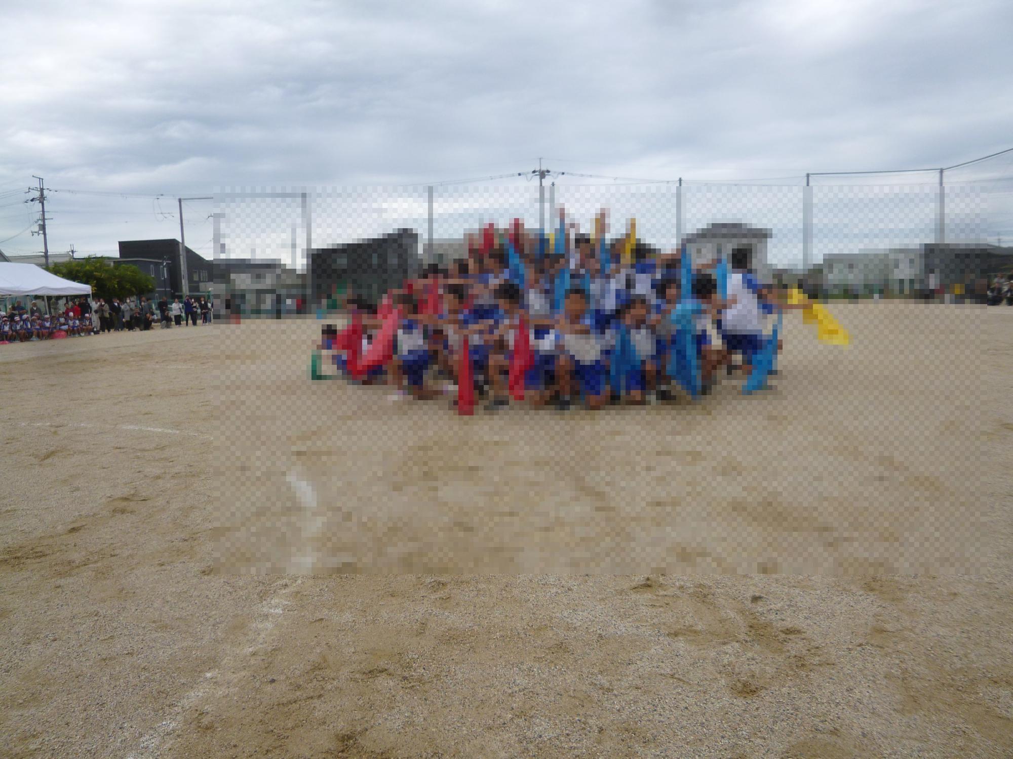今日、運動会を開催しました。朝から小雨が降っていたため、多くの人が実施できるか心配いただきましたが、無事、終えることができました。前半の短距離走では、ゴールまで全力で走り切ることができました。団体競技では、同じ色の友達を精一杯応援する子どもたちの姿が印象的です。団体競技ではどの学年も、練習の成果を発揮しすばらしい発表でした。
