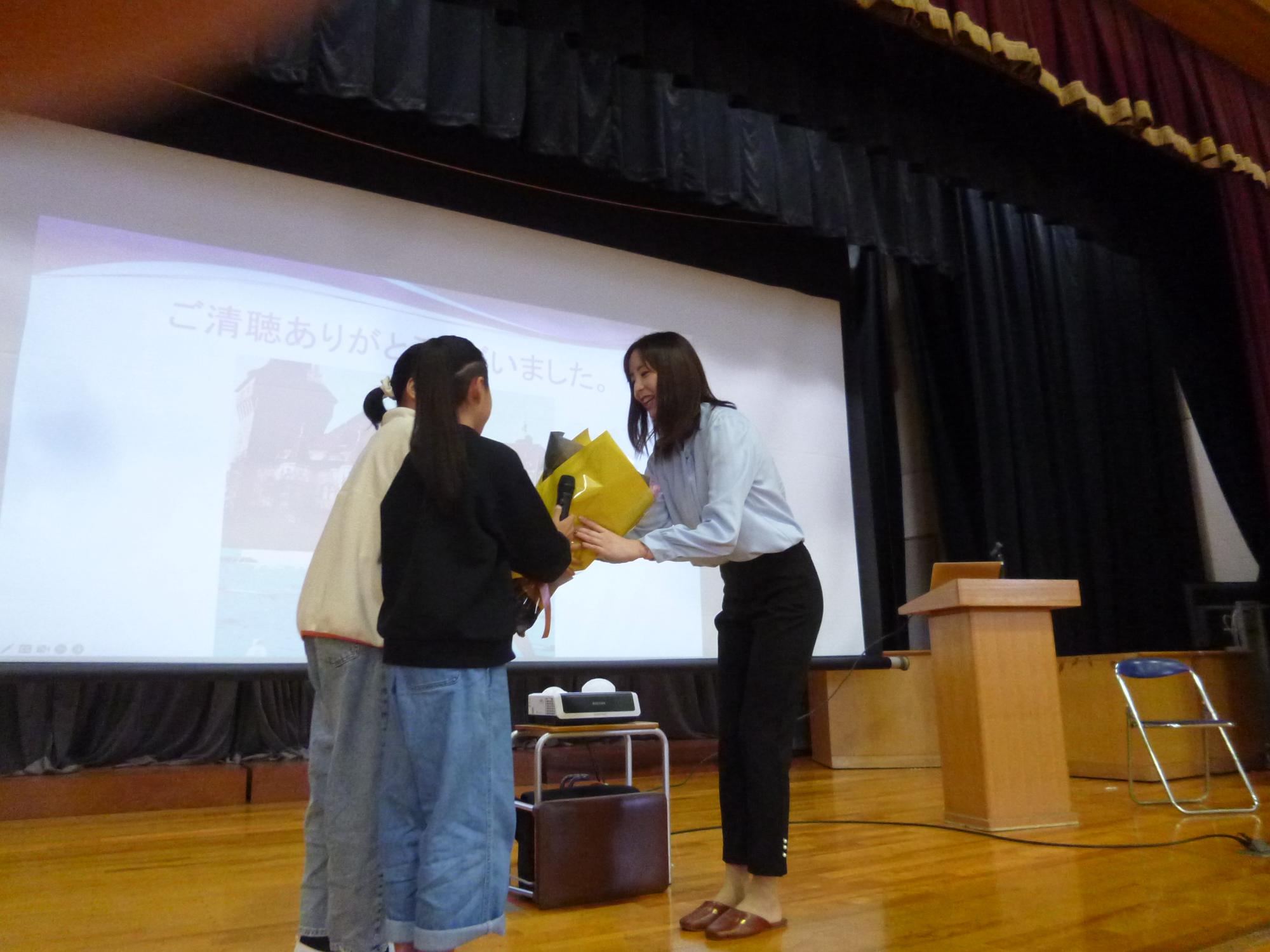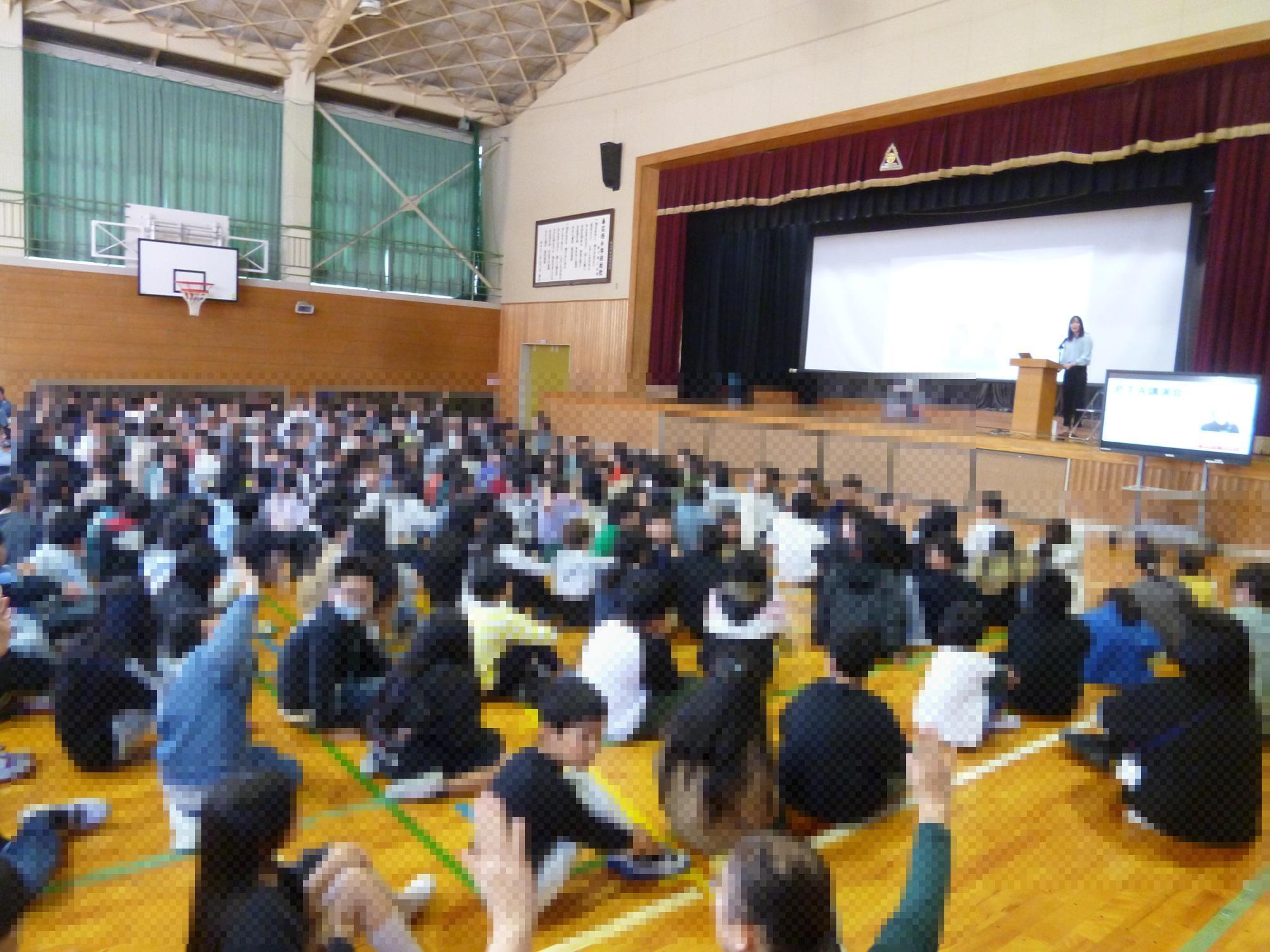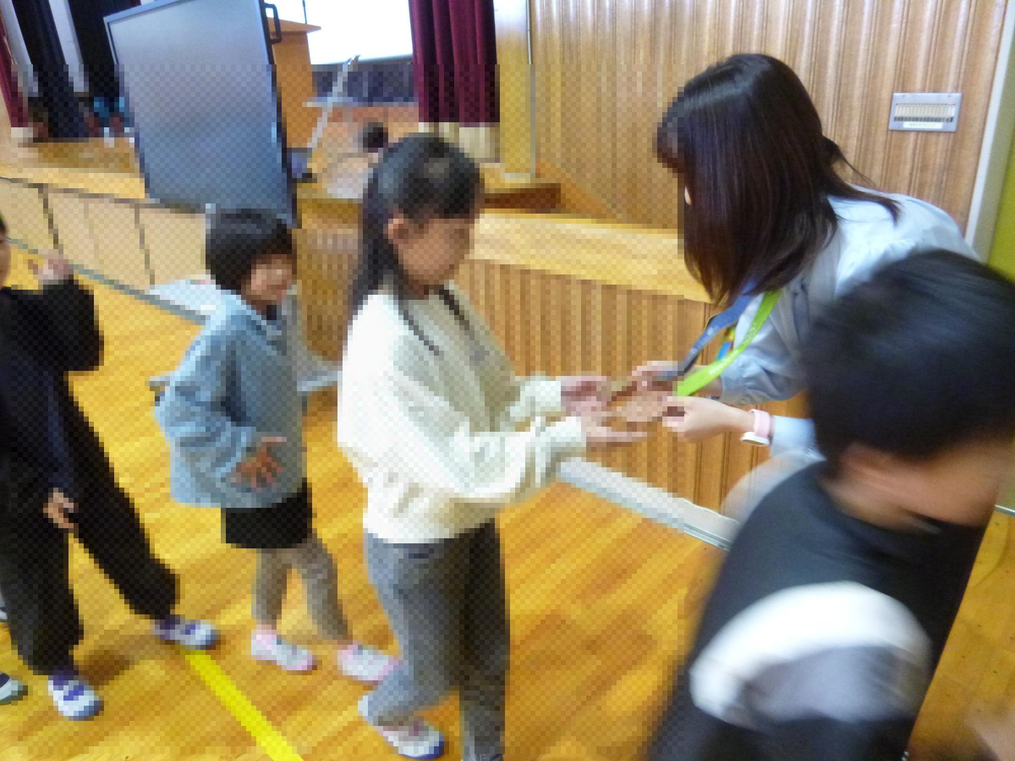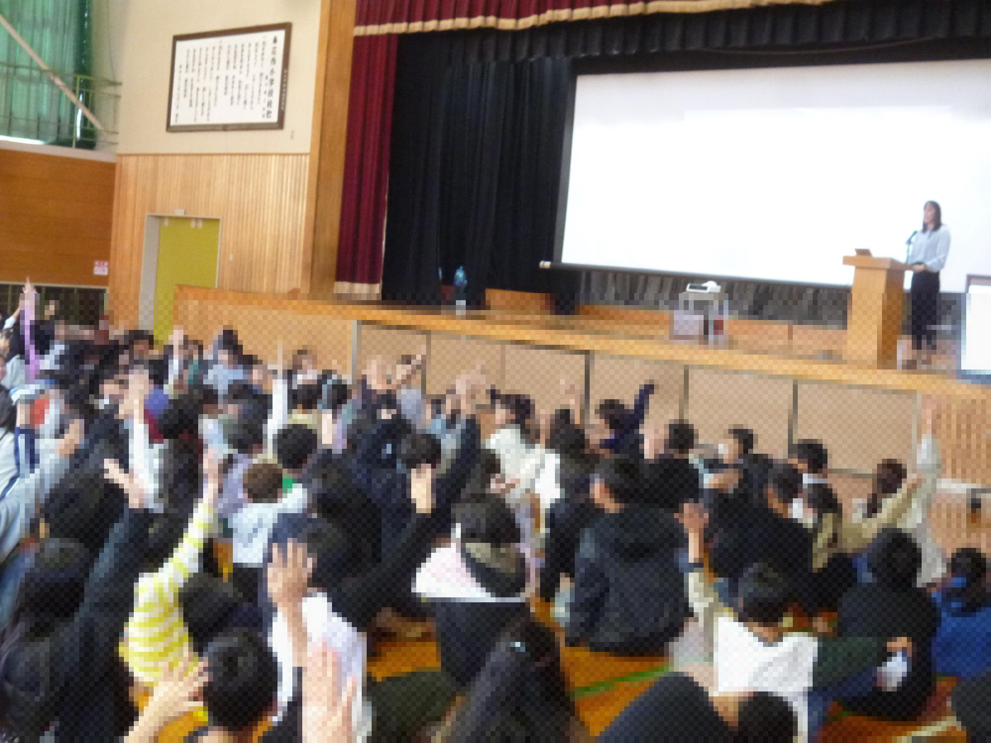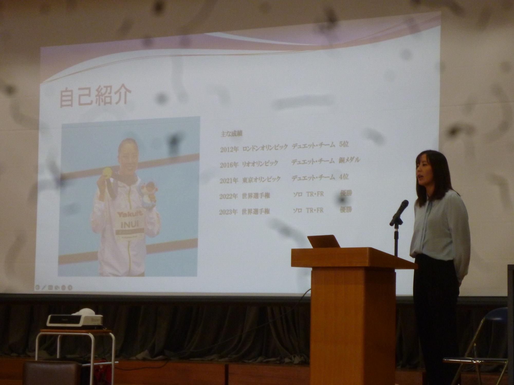 4時間目はオリンピックのメダリスト、乾友紀子さんをお招きし、講演会を開催しました。アーティスティックスイミングで輝かしい実績を残された乾さん。幼少期に大好きなこの競技に夢中で打ち込んだこと、オリンピックで結果が出ず悩んだこと、尊敬する井村コーチから「1ミリの努力」(毎日、ほんの少し背伸びして頑張ることが大きな成長につながる)の言葉をかけられ、もう一度オリンピックに挑戦し、メダルが取れたことなど、クイズやご自身の映像を交えながら、子どもたちにわかりやすく夢をかなえるまでのご自身の体験を語っていただきました。最後に児童一人一人に世界選手権の金メダル、オリンピックの銅メダルを触らせていただき、とてもいい思い出になりました。子どもたちは乾さんから演題の「夢の叶え方」を学ぶだけでなく、「目標をもってやり抜く心」も学ぶことができました。乾さん、本当にありがとうございました。本校では、試行錯誤しながら目標に向かおうとする力、「自己調整力」の育成に力を入れています。今回、乾さんから学んだことをこれからの自己調整に大いに生かしてもらいたいと期待しています。