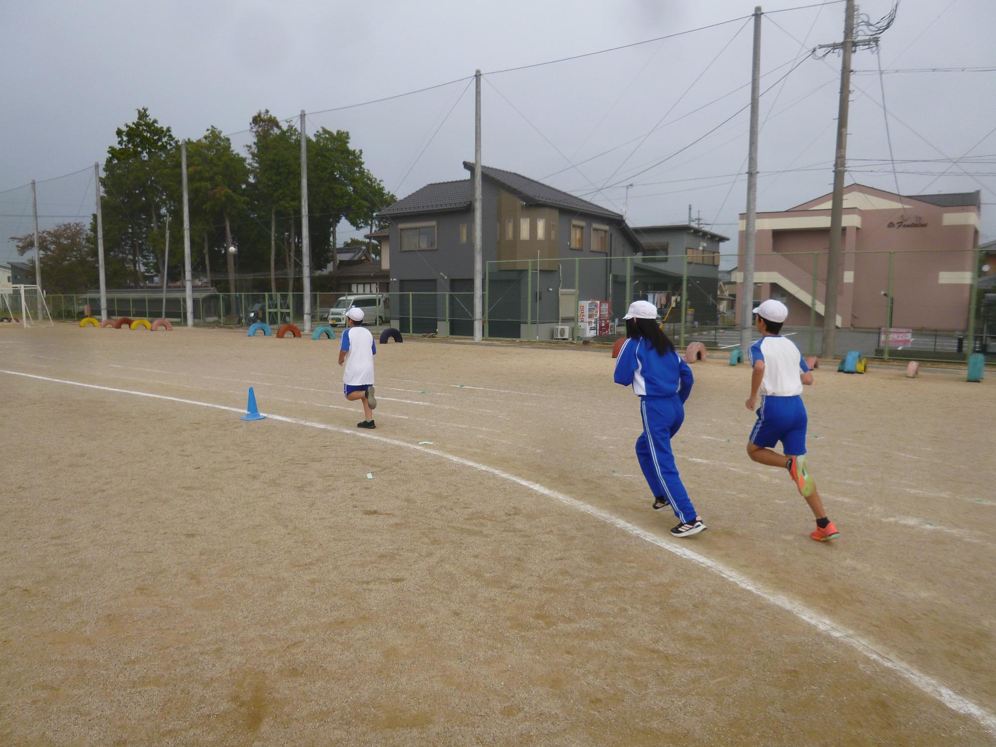 運動会が終わり、今、体育の学習では11月6日(木曜日)にある持久走大会に向けて練習を取り組んでいます。持久走大会は低学年3分、中学年4分、高学年5分間に何m走ることができるのか、自分で立てた目標の達成に向けて挑戦する大会です。時間走の大会ですので、決められた時間、歩くことなく動きを持続することが大きなねらいです。自分のペースをつかみ、自分で立てた目標が達成できるよう、見守っていきます。