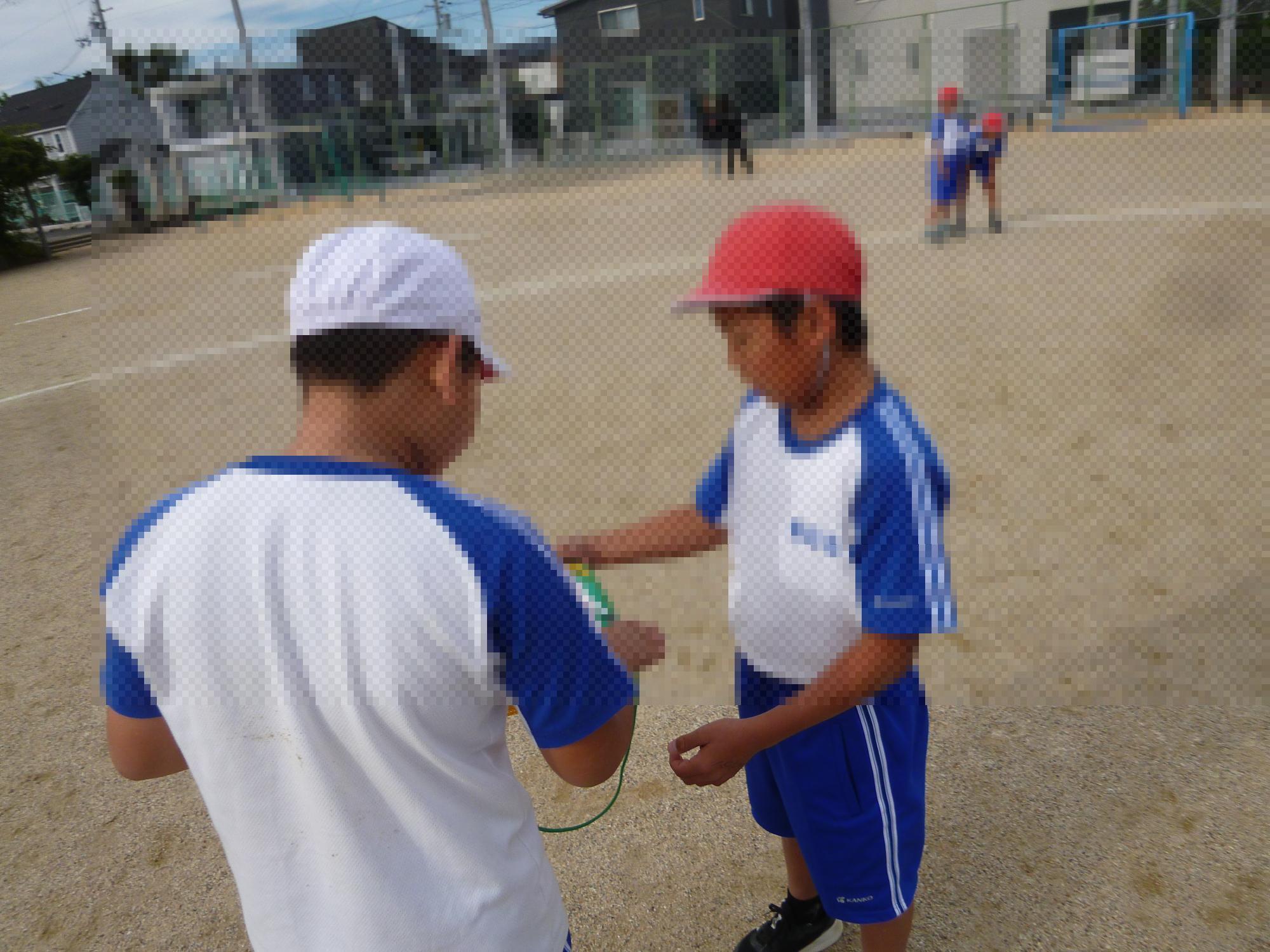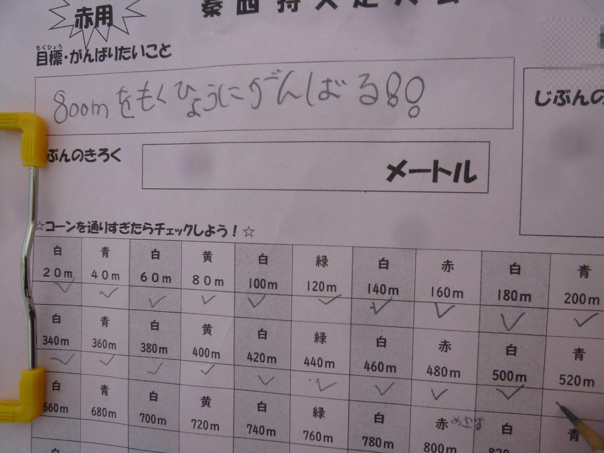 ペアの友達が走った距離を記録しながら懸命に応援していました!