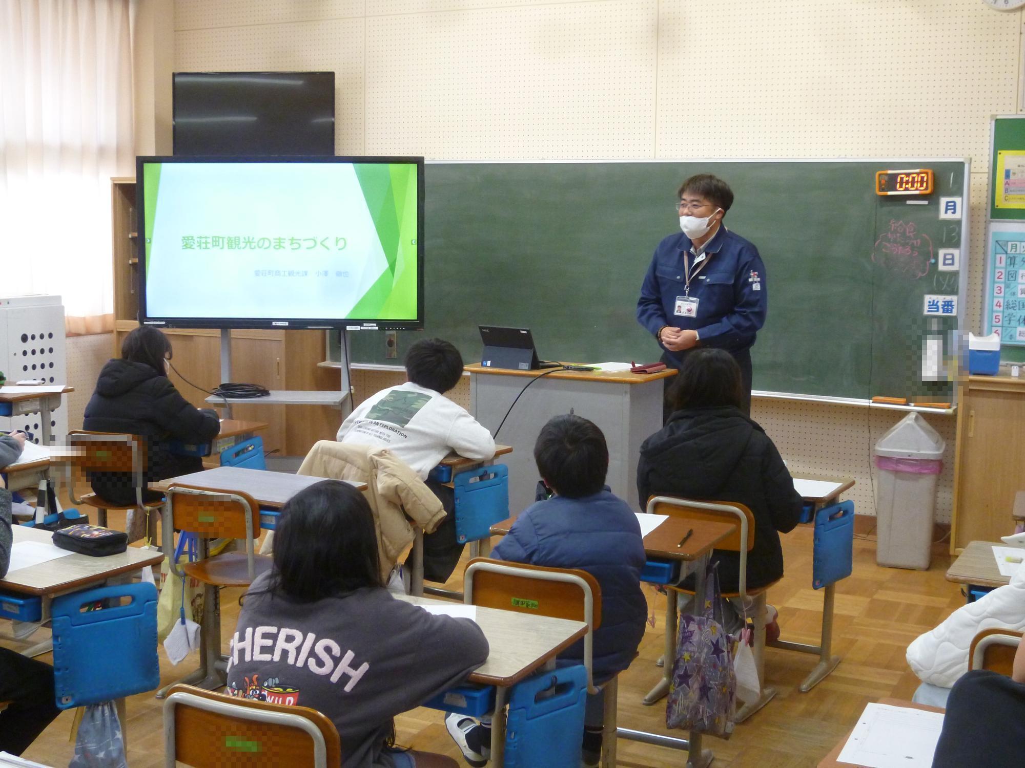 5年2組の5時間目は、総合的な学習でした。3学期は、愛荘町の課題についてみんなで考えます。この日は、町役場から各課の職員に来ていただき、各課における課題等を子どもたちに教えていただきました。これから、5年生の子どもたちが、今日教えていただいた町の課題を解決するためのアイデアを考えていきます。本日来ていただいた職員の方にもサポートしていただく予定です。愛荘町のことについて、町職員の方と一緒に考えるすばらしい機会をいただきました。この機会を子どもたちの成長につなげていきます。