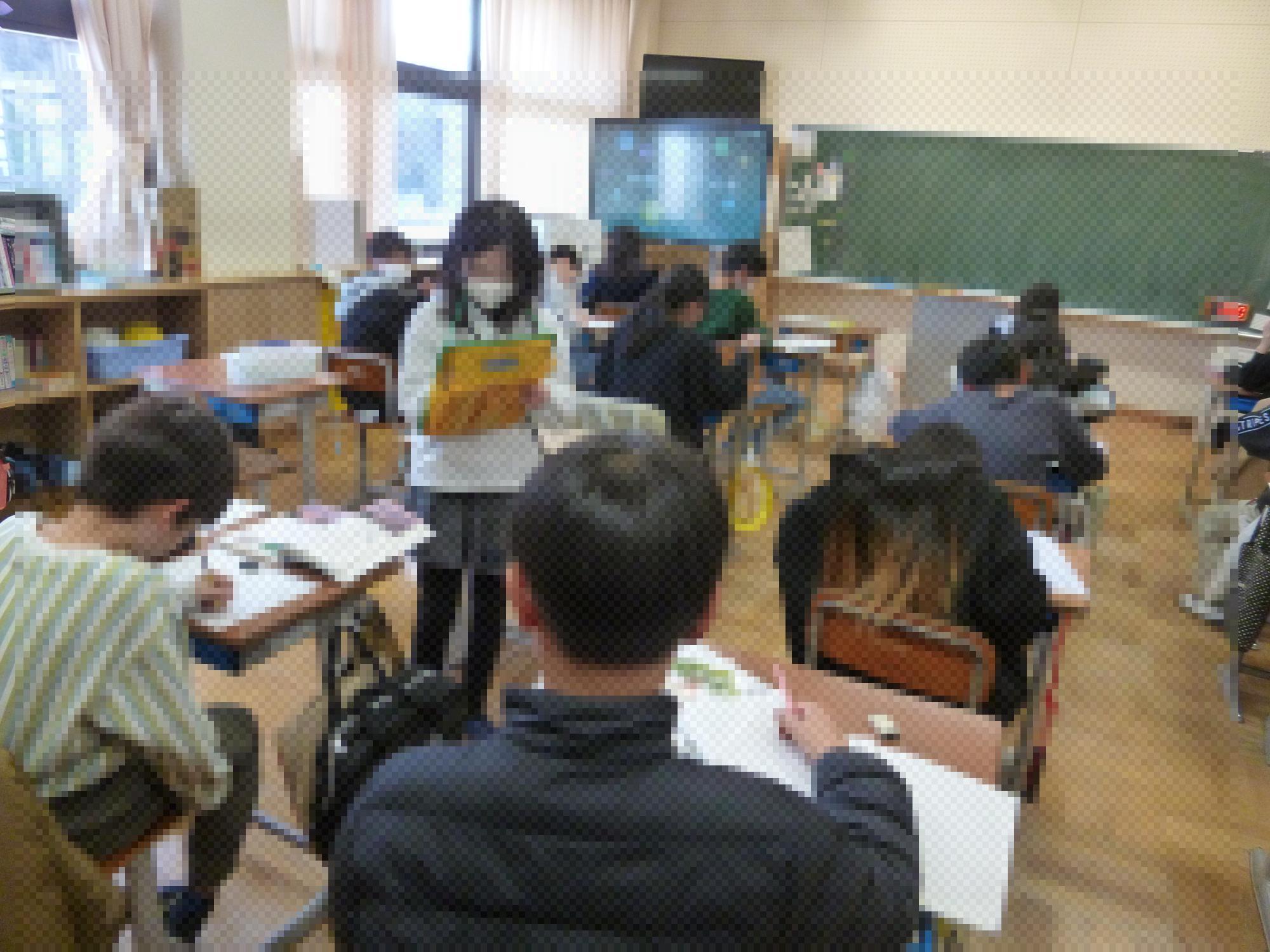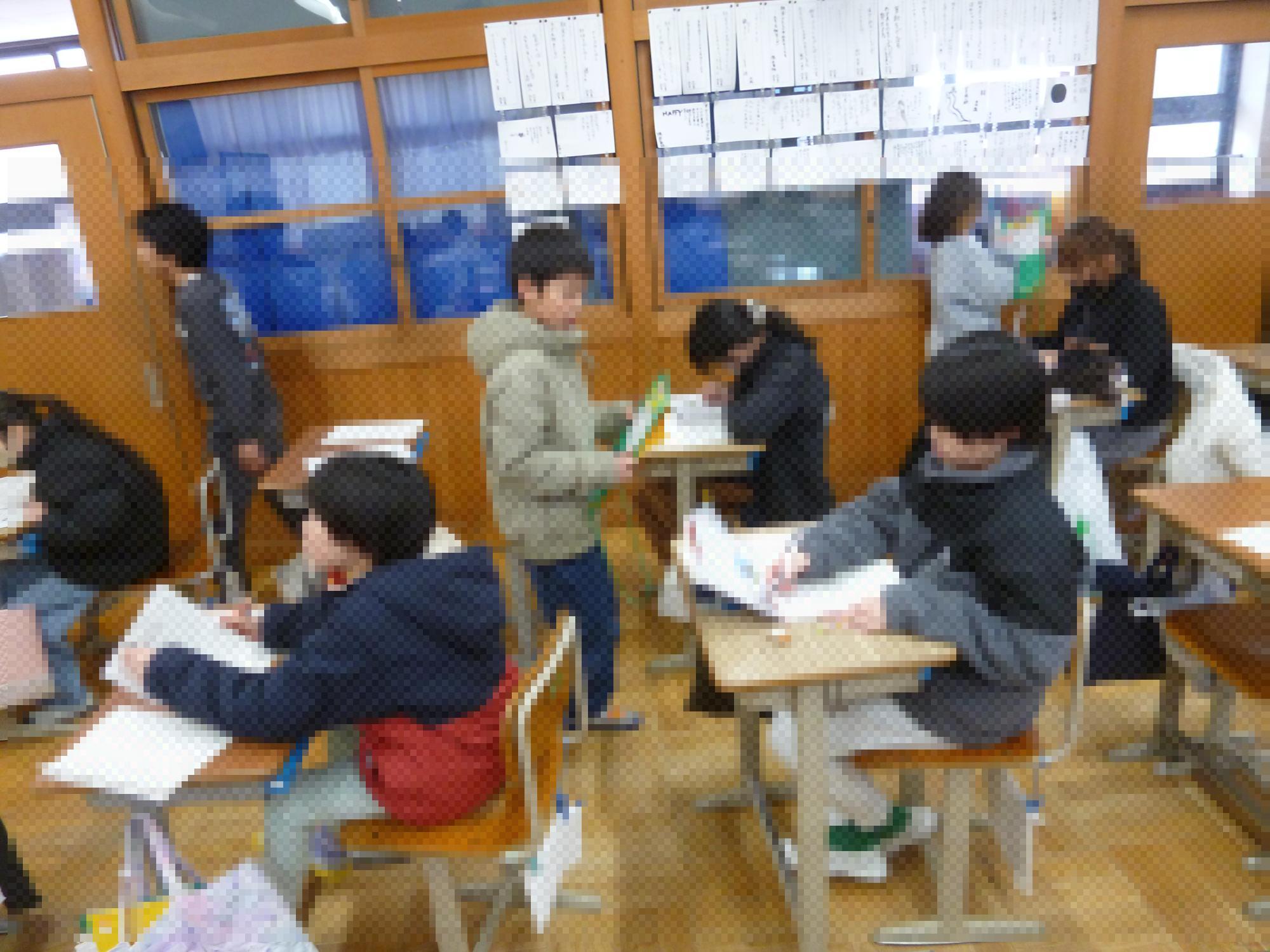 スパイ作戦で、他の学年の学習方法を見学する4年生
