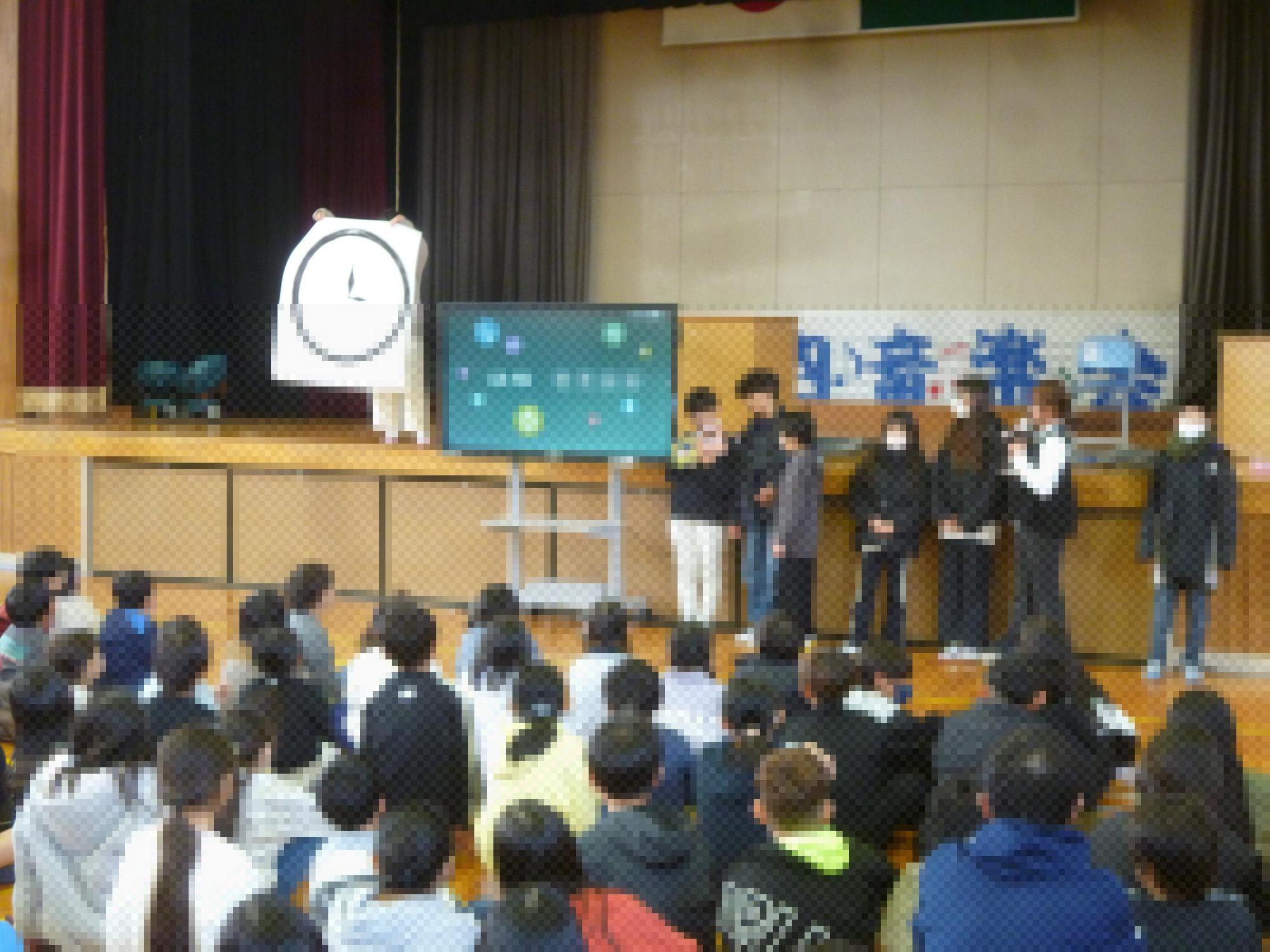 この日、3月の秦西ミーティングを行いました。2月の生活目標は1年生が決めた「言葉を大切にしよう」でした。その振り返りをみんなで発表してくれました。3月の目標担当は5年2組。そして発表された目標が「時間を守ろう!」です。5年2組で学校の課題を話し合ったところ、掃除や授業に間に合わない人がいるという意見が多かったそうで、時間を守ることを全校目標にしてくれました。1年間で締めくくりの3月。全校みんなで時間を守っていきましょう!最後に6年生が縦割り掃除で掃除場所ごとのポイントを発表してくれました。学級閉鎖等で延期になっていた縦割り掃除を来週から再開します。全校で時間を守りながら校舎をきれいにしましょう!