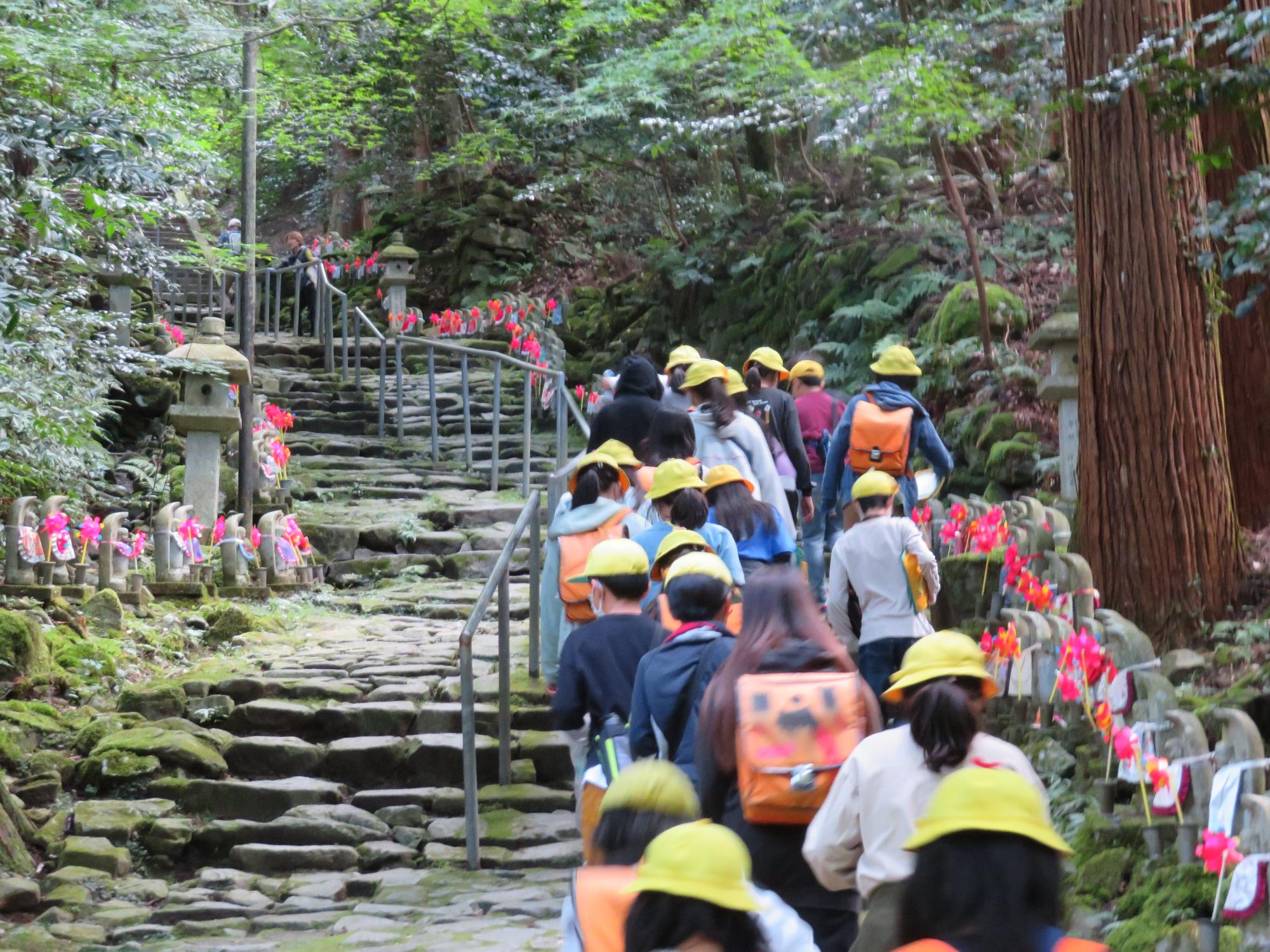 今日は、6年生が町内バスツアーに出かけました。午前中は、2グループに分かれて金剛輪寺、依智秦氏の里古墳公園を巡りました。特に金剛輪寺では、お寺の中に入らせてもらい、住職さんから建物や仏像等の歴史やいわれについてのお話をして頂きました。子どもたちは熱心に話を聞きながら、メモを取ったり手を合わせたりする姿が見られました。学校で給食を食べた後、午後からはハーティーセンター秦荘へ赴き、大ホールで商工観光課の方から愛荘町の魅力についてのお話を聞きました。愛荘町イメージキャラクター「あしょうさん」も登場し盛り上がる子どもたち。愛荘町の名所や特産品、工芸品などを特集した素晴らしい動画も見ながら、自分たちの住む愛荘の良さを再発見することができました。