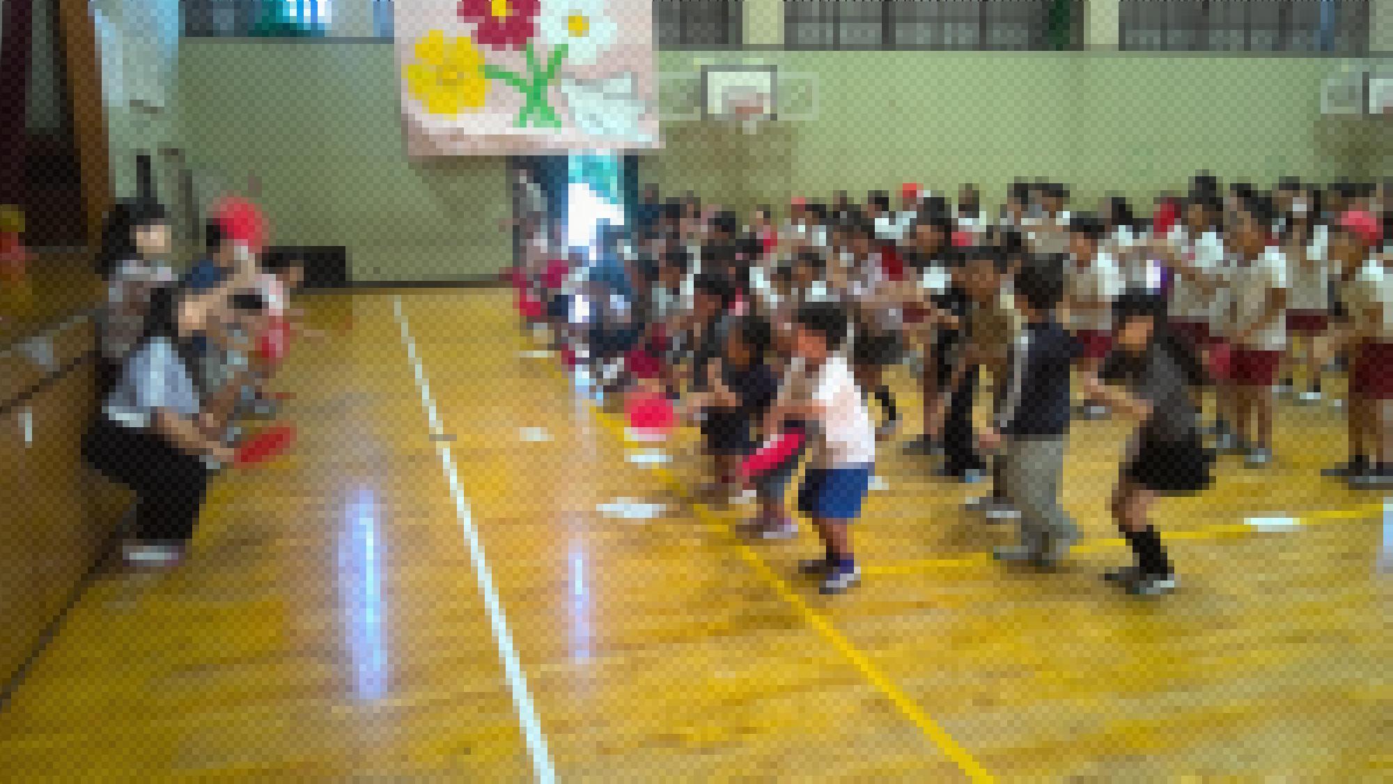 5班が集まることで迫力も格段にアップし、練習場所に大きな声が響き渡りました。次週14日(火曜日)からは、全色が集まっての応援合戦の練習が始まります。子どもたちが一致団結し優勝を目指す応援合戦、輝く姿がたくさん見られることを楽しみにしています。