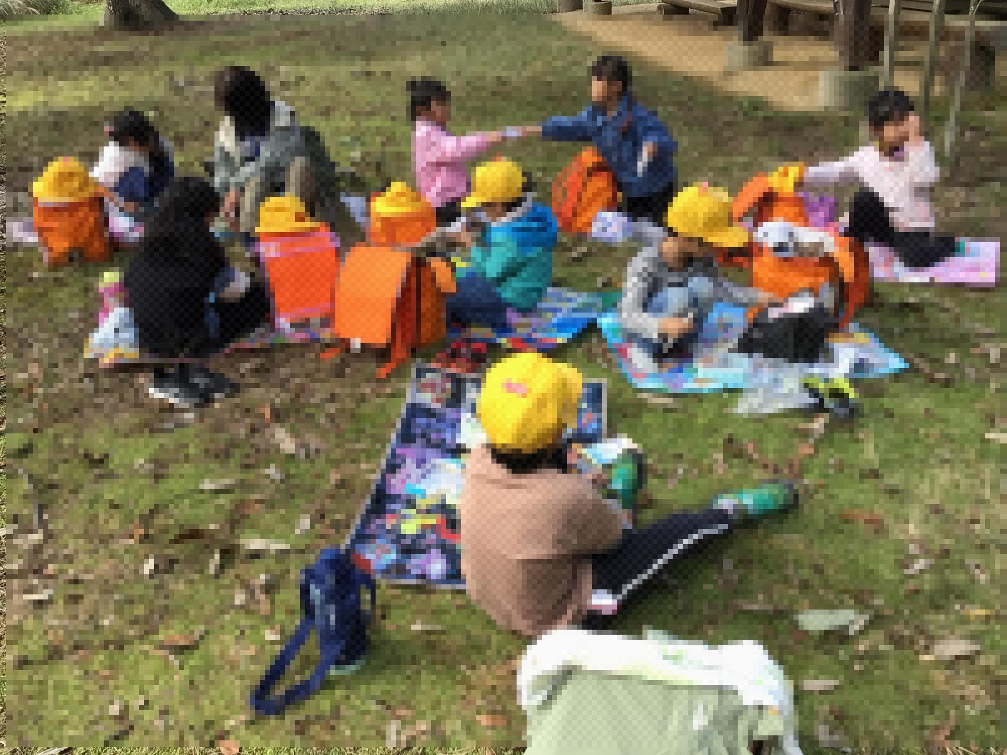 たくさん探検して遊んだ後は、楽しみにしていたお弁当です。お弁当を開くと、「わあ~、おいしそう~!」と嬉しそうな声が森の広場に響きました。