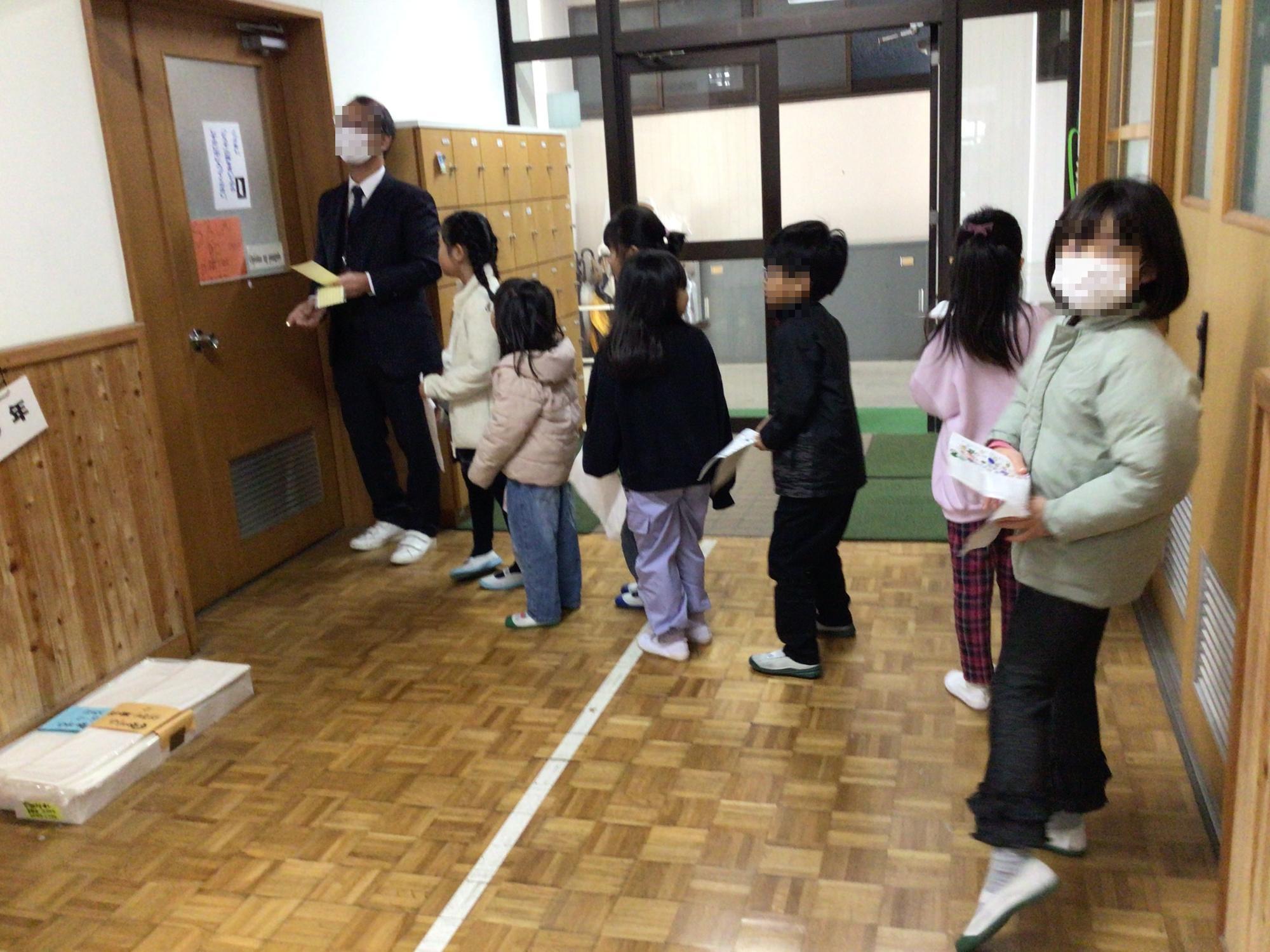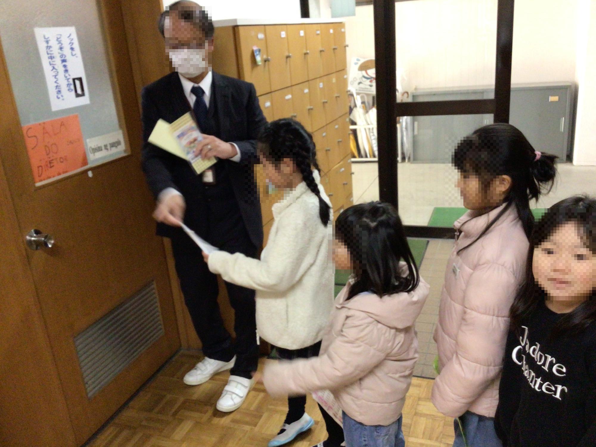 中休み、昼休み、校長室前の廊下には長い行列ができます。校長先生に、最終合格シールをもらうためです。上り九九、下り九九、バラ九九すべての試験に「合格」できたら、シールをもらえます。合格した子どもたちが嬉しそうに「がんばり表」を見せてくれました。冬休みも忘れないように、かけ算九九頑張ってね!