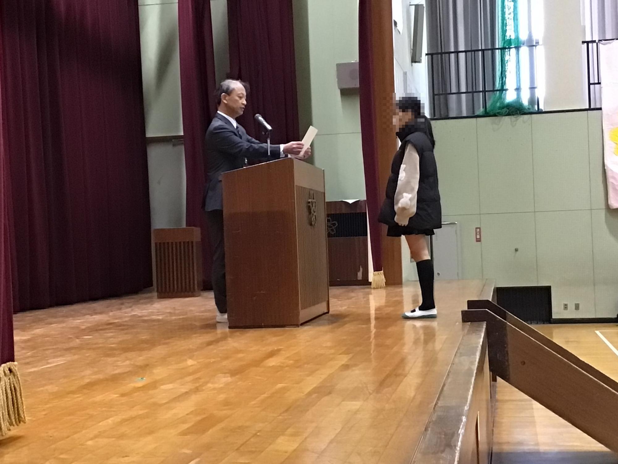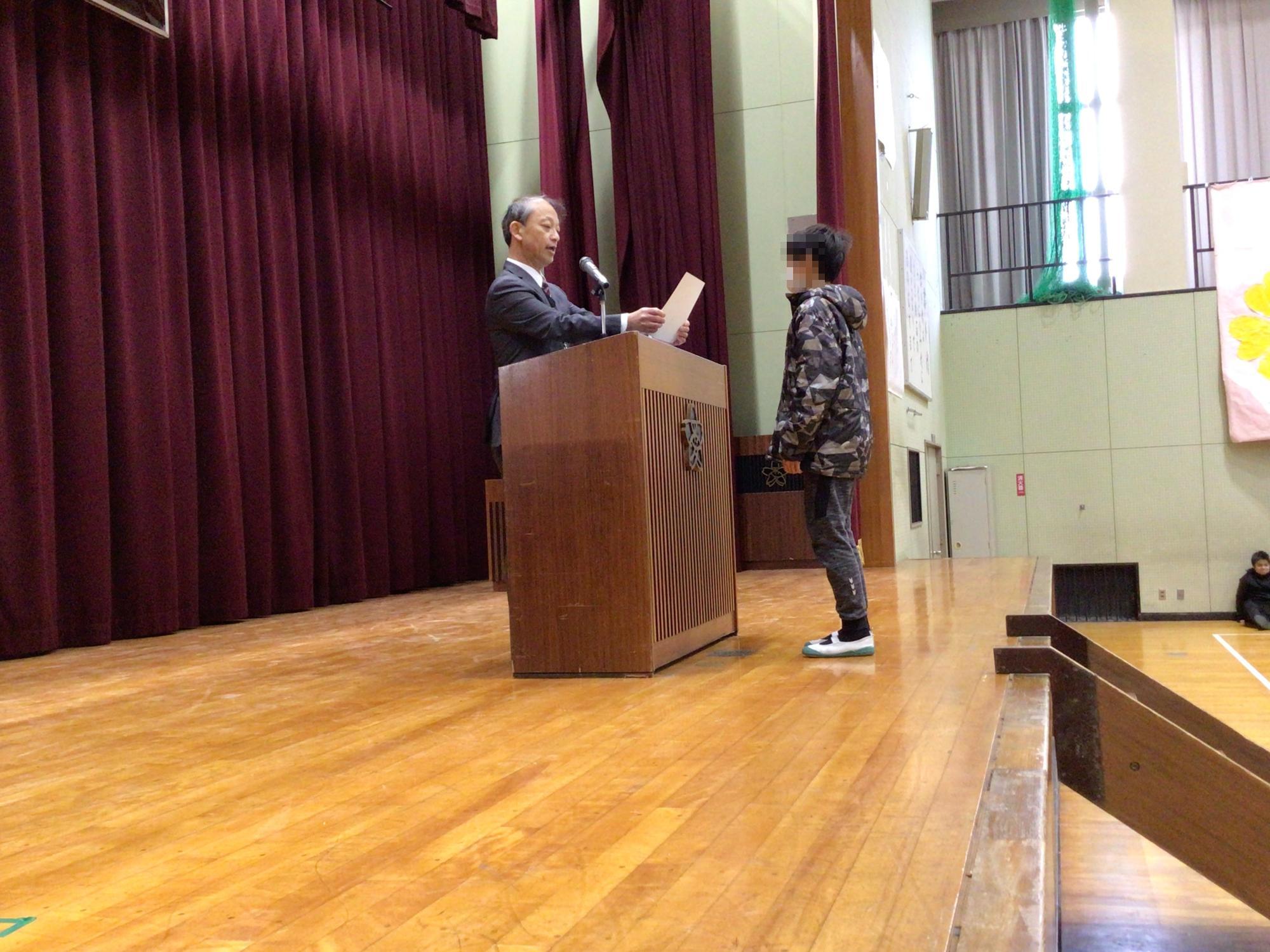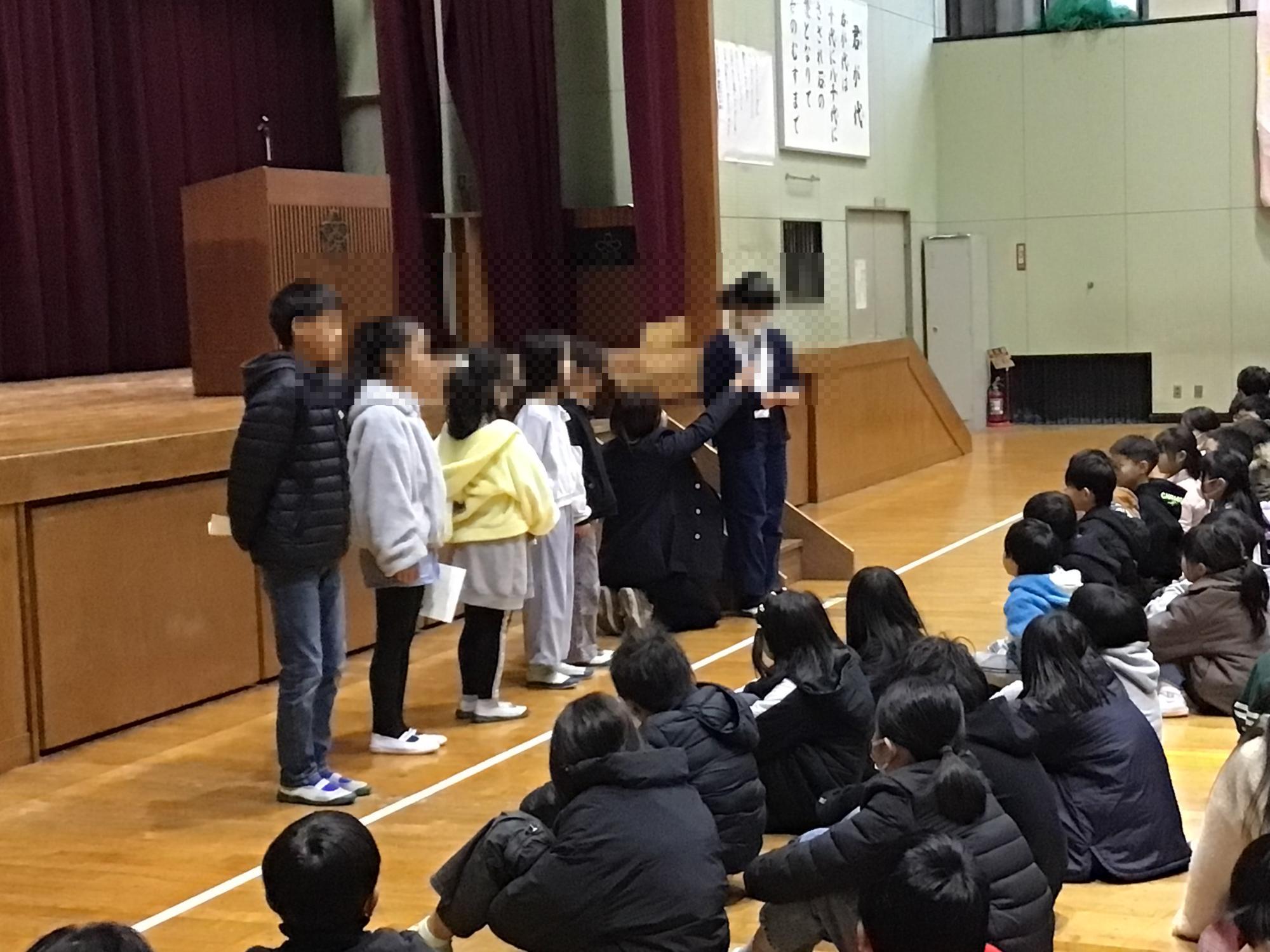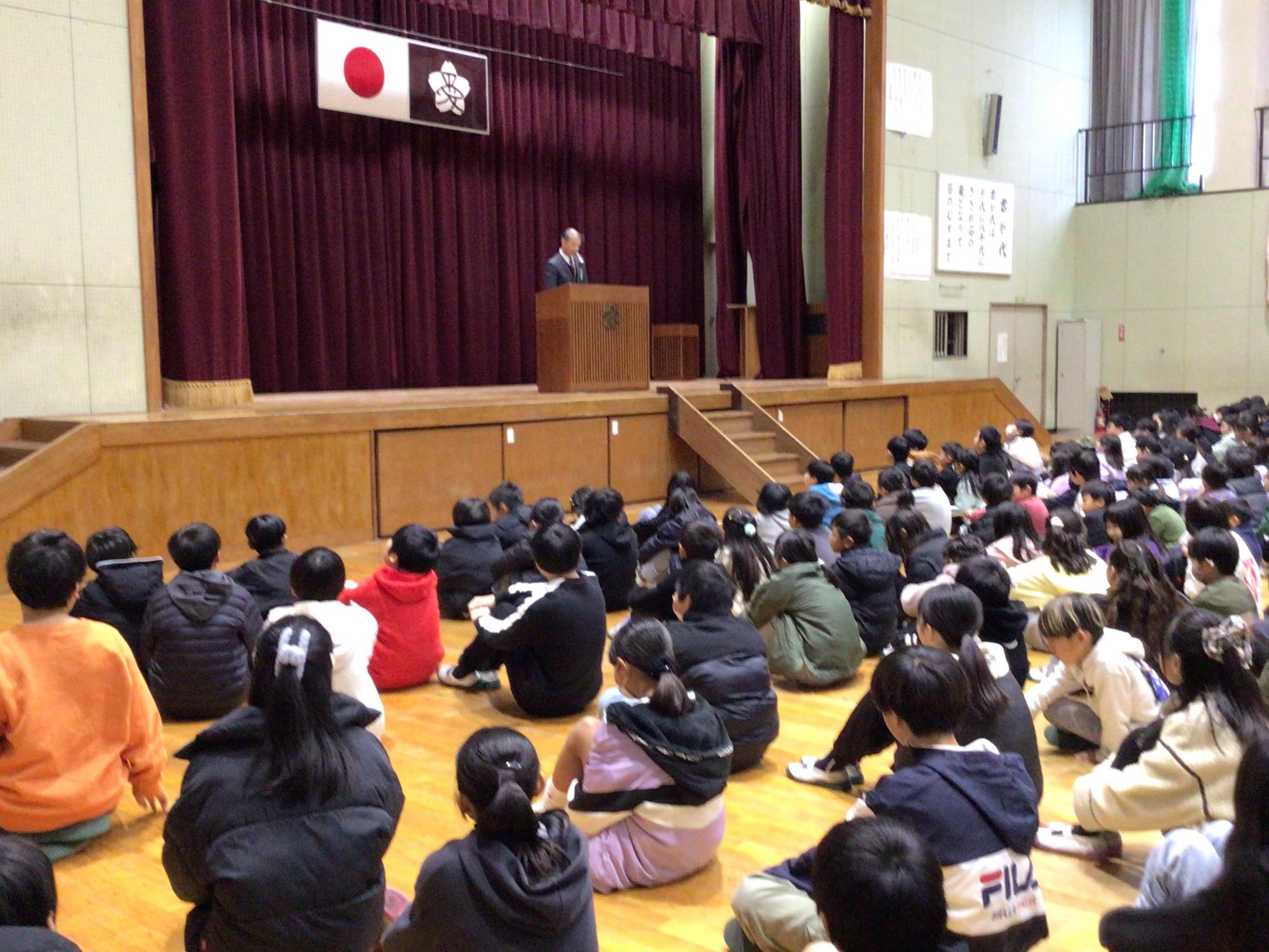 2学期の終業式が行われました。校長先生は、長い2学期をふりかえり、子どもたちが頑張っていた姿をいっぱい褒めてくださいました。その後、各学年の児童代表が2学期を振り返ってがんばったことや3学期に頑張りたいこと等を発表しました。また、「持久走チャレンジ大会」と「自主勉チャレンジウィーク」の入賞者の表彰も行われました。