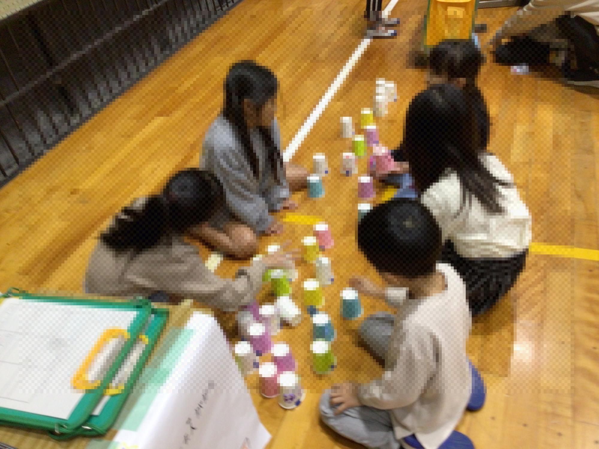 2年生は、生活科の学習で1年生を招いて「おもちゃランド」を開きました。この日まで、おもちゃの準備をしたり、遊び方の説明を練習したりと1年生が楽しめるようにグループで力を合わせて頑張ってきました。1年生は遊び方を教えてもらいながら、笑顔いっぱいで楽しむ様子が見られました。