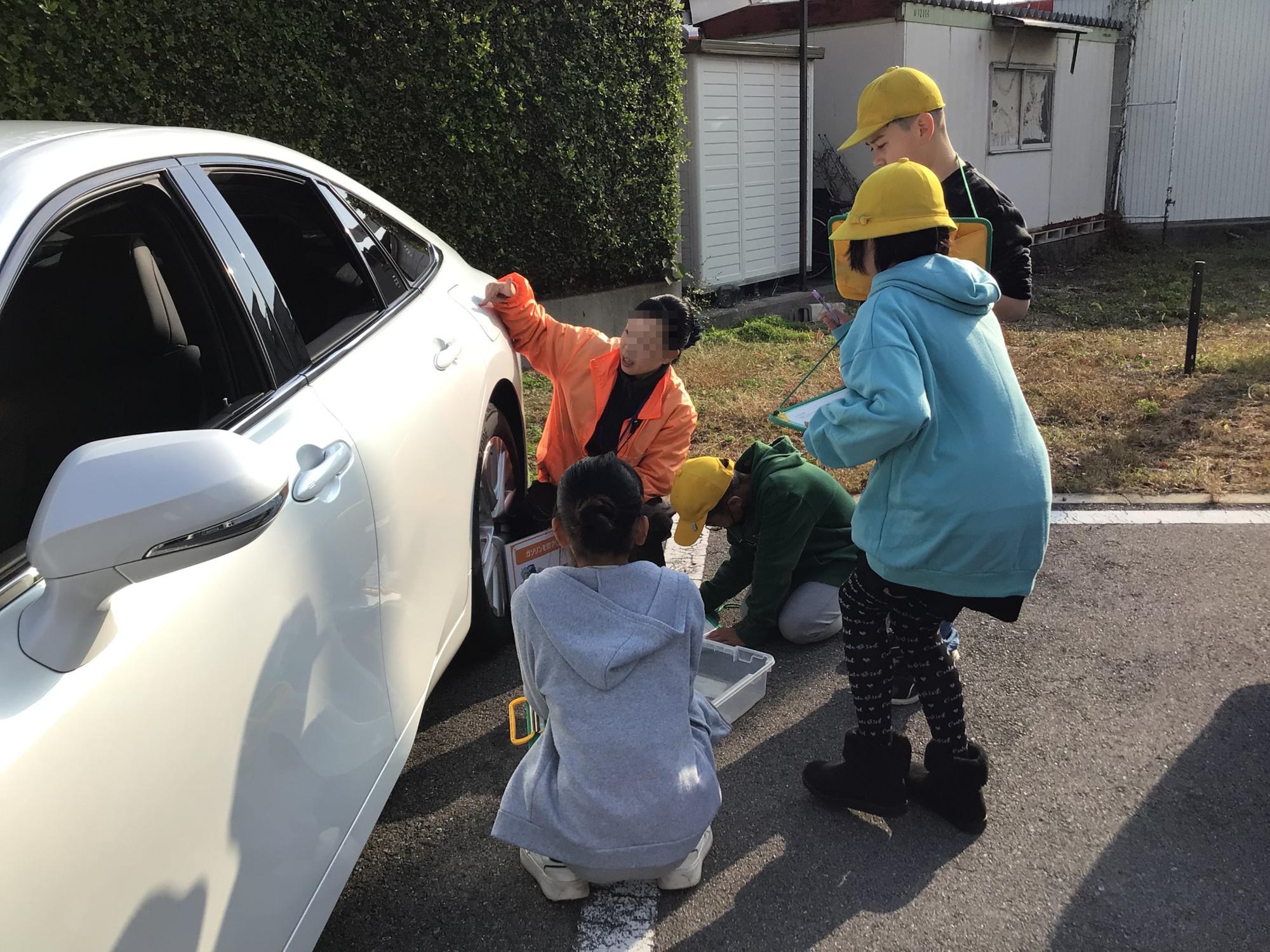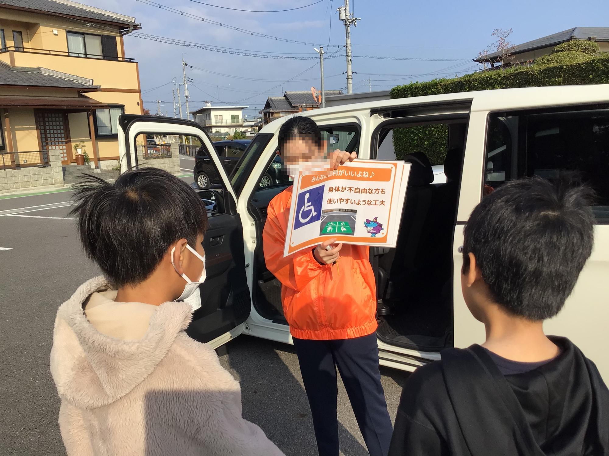 5年生は、「トヨタカローラ滋賀」の皆さんをゲストティーチャーとしてお迎えして、「クルマと社会つながる教室」を開いていただきました。燃料電池自動車、ハイブリット車、福祉自動車等を実際に見せていただきながら、燃料の仕組みや車のつくりなど、詳しく教えていただきました。
