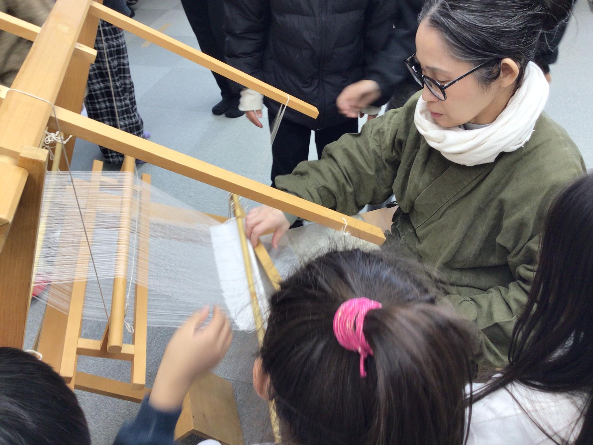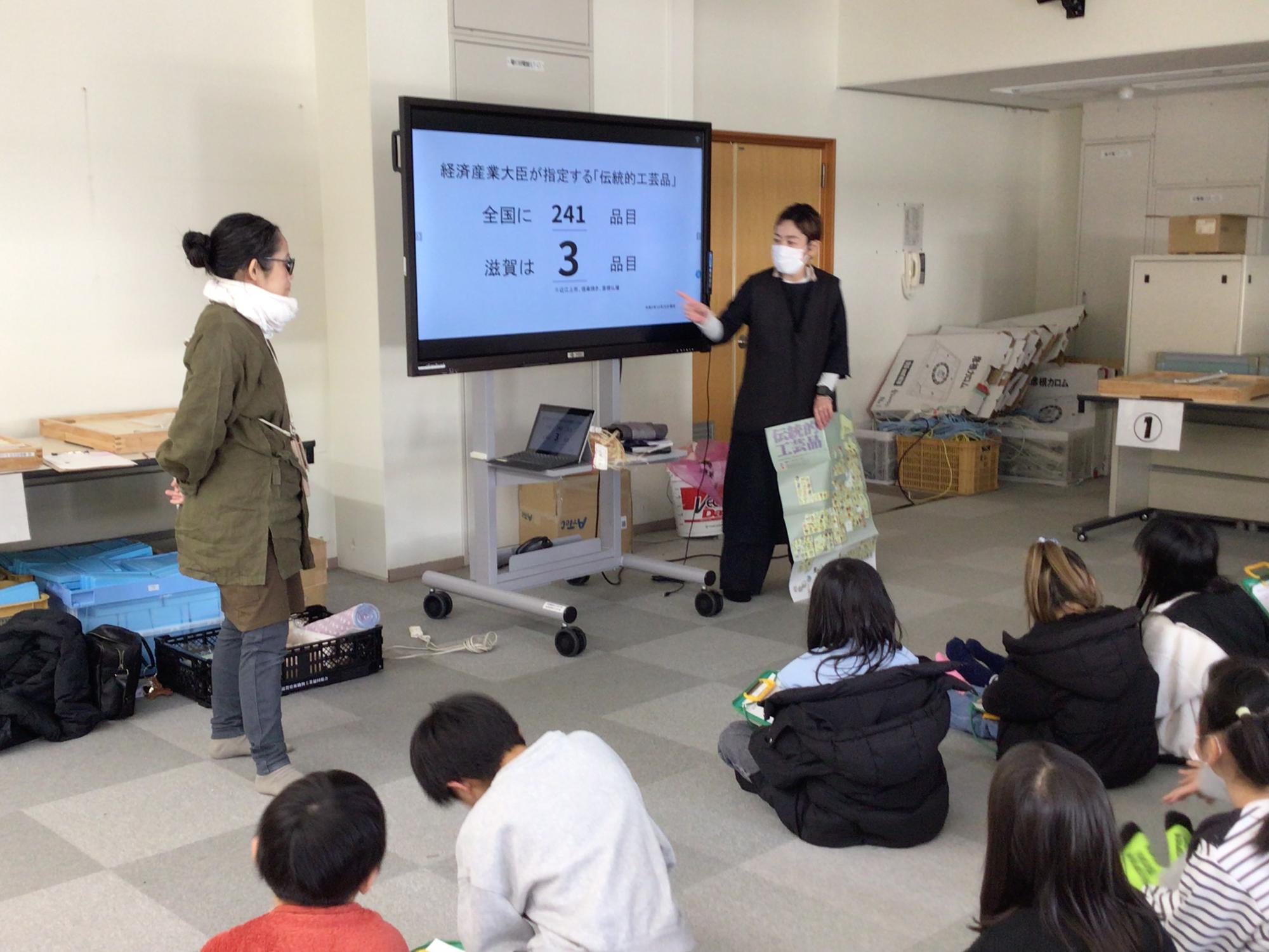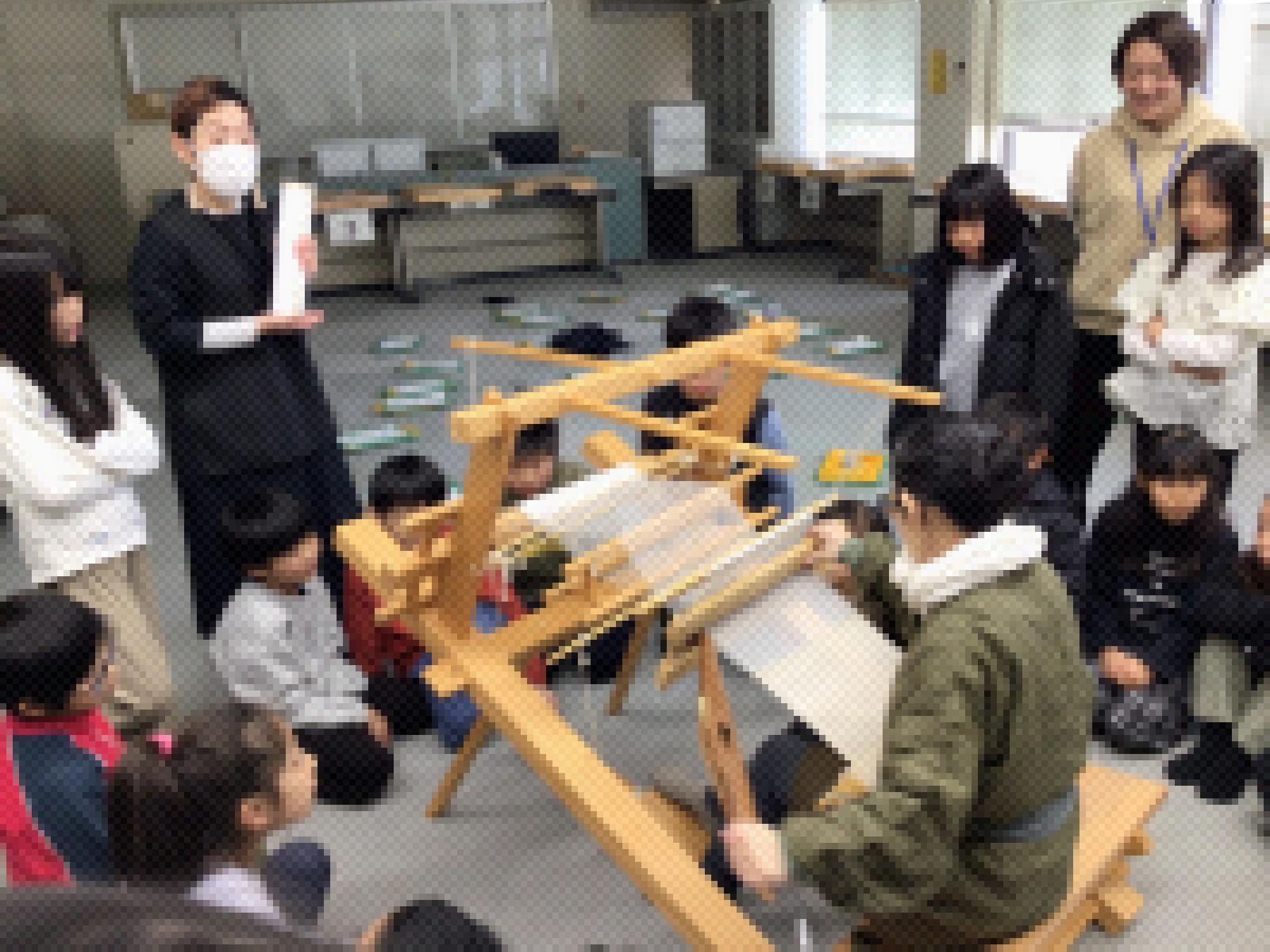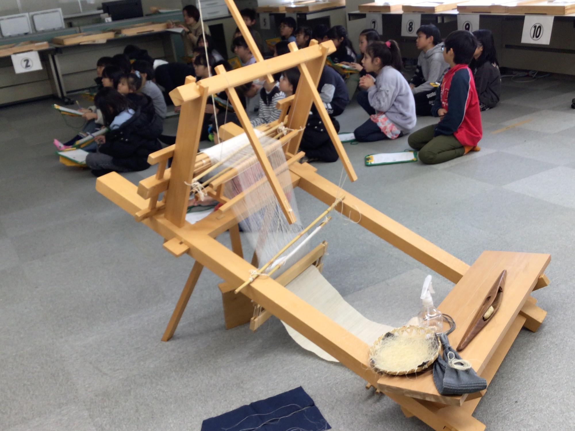 3年生は、「近江上布伝統産業会館」の方々をゲストティーチャーにお迎えして、滋賀県の伝統工芸の一つ「近江上布」について教えていただきました。