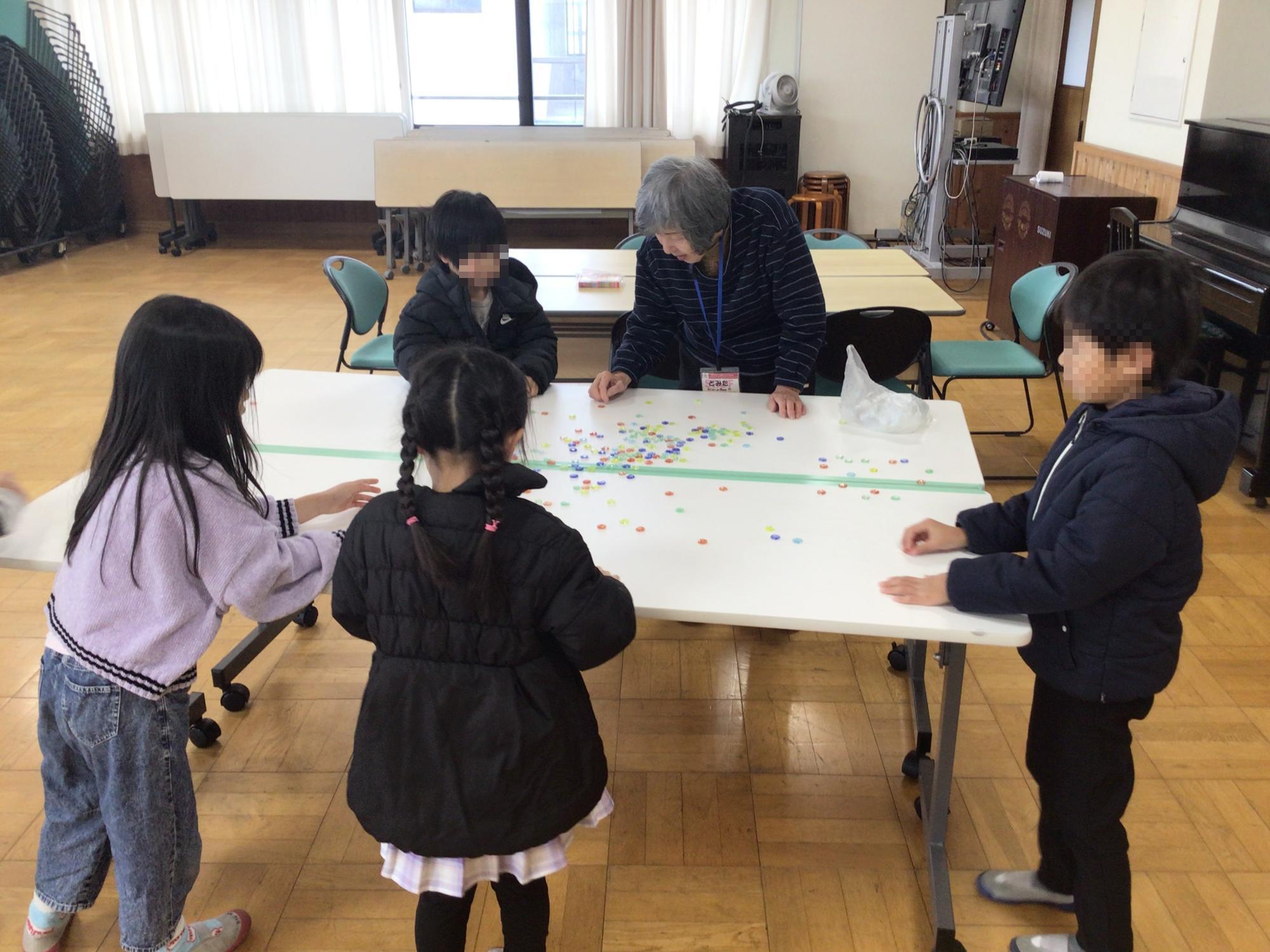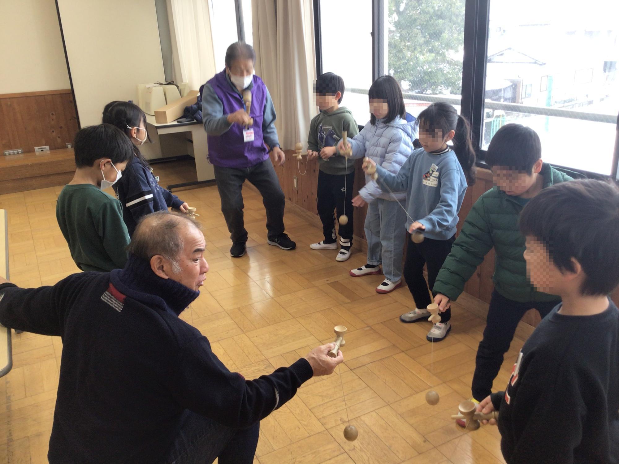 1年生は、地域の方をゲストティーチャーにお招きして、「昔遊び」をしました。けん玉やおはじき、駒回しなど、ルールや遊び方等、一緒に遊びながら丁寧に教えていただきました。地域の皆さん、お忙しい中、ご来校いただきありがとうございました。