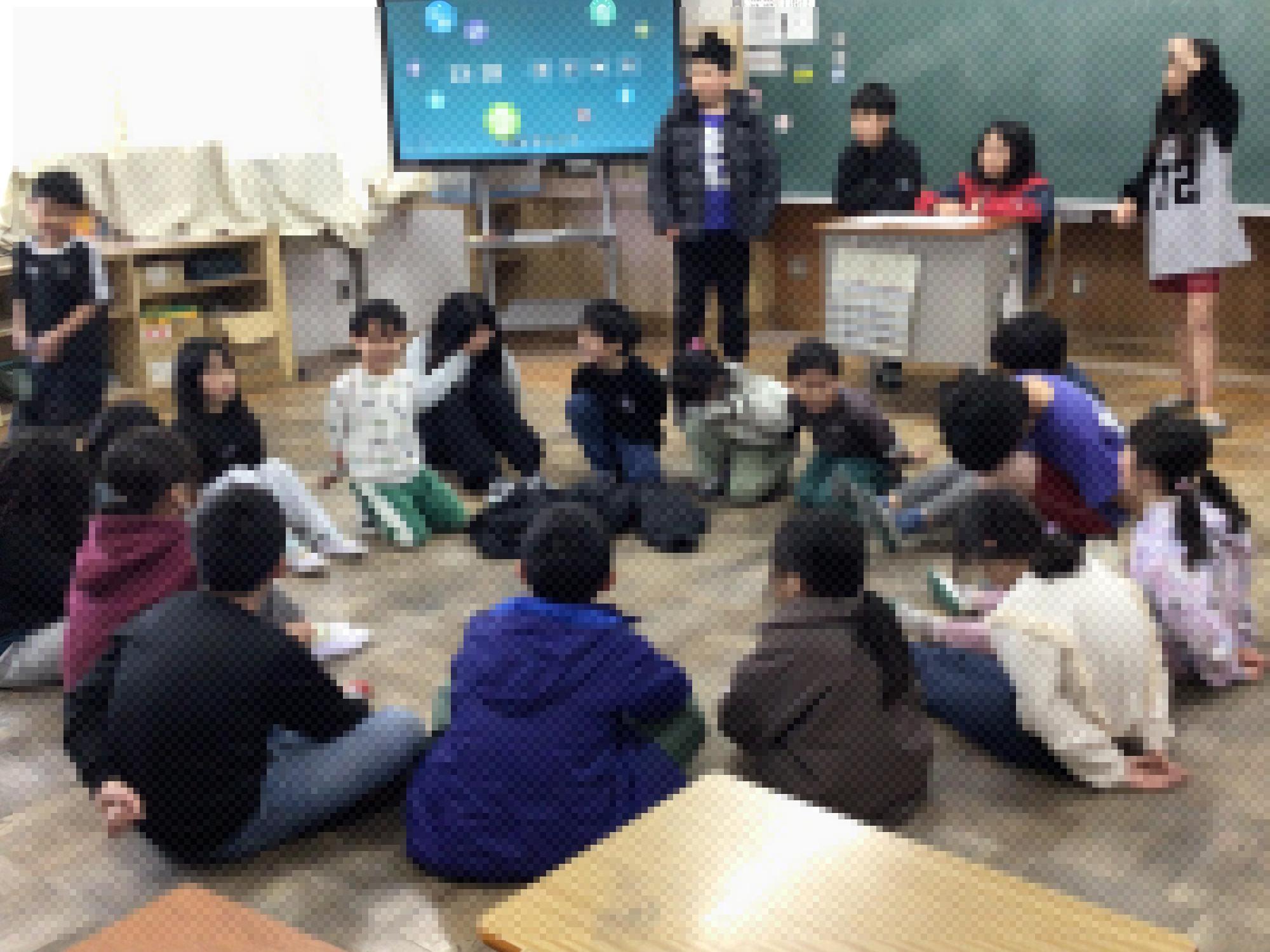 6年生の卒業を前に、今日ははじめて5年生が「色班遊び」を計画して行ってくれました。6年生は、5年生の進行を静かに見守りつつ、5年生が考えてくれた遊びを楽しんでいる姿が見られました。どの教室も笑顔があふれていました。