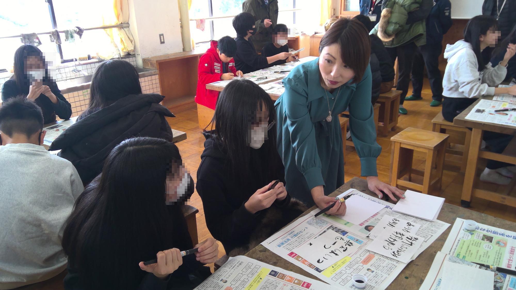 6年生は、筆文字アーティスト「まさみん」さんをお招きして、「夢の叶え方」講演と筆文字アートを教えていただきました。自分を大切にすること、「好き」を大切にすること、夢や叶えたいことを言葉にする大切こと等を自分の経験を交えながらお話ししてくださいました。