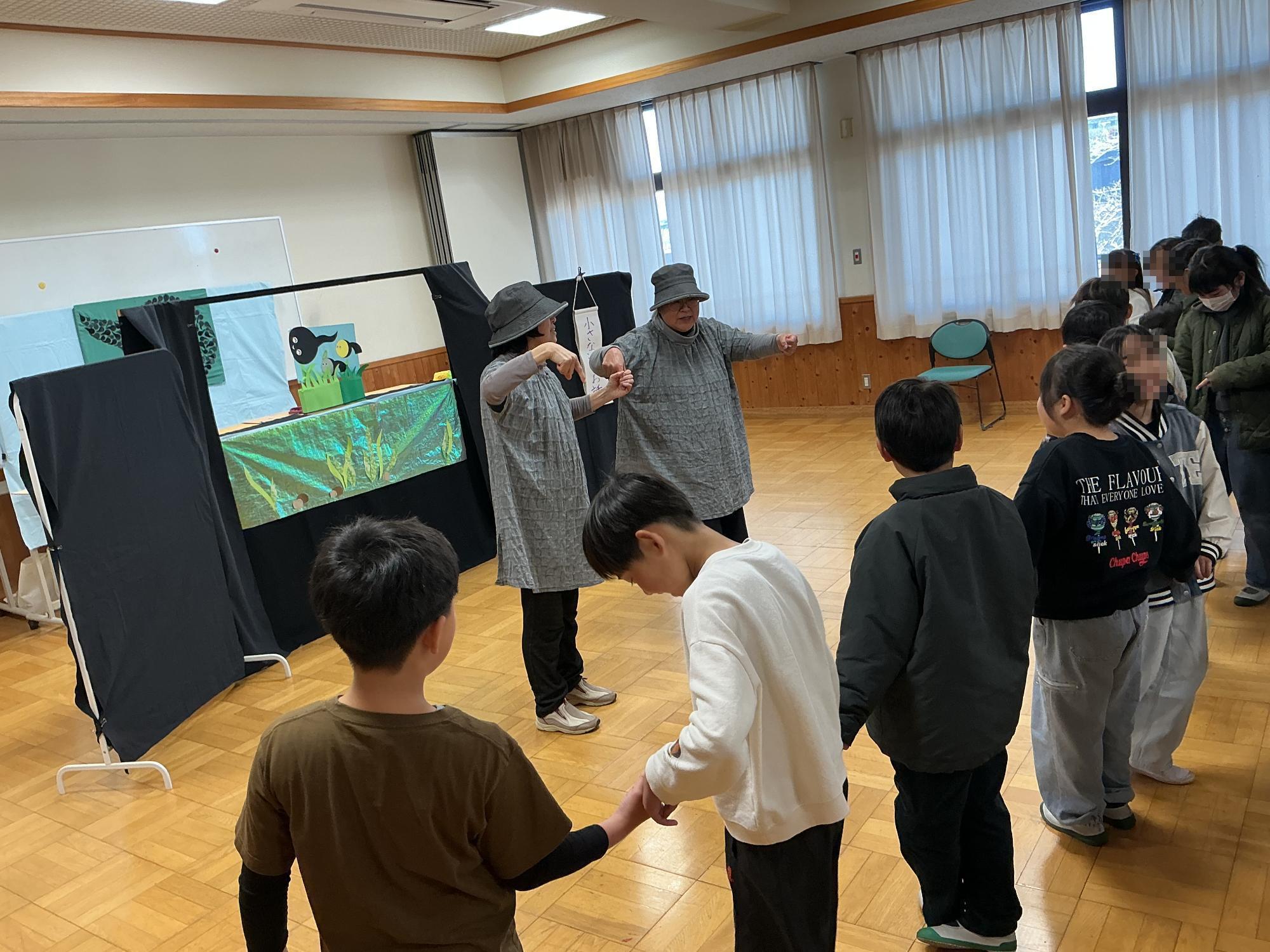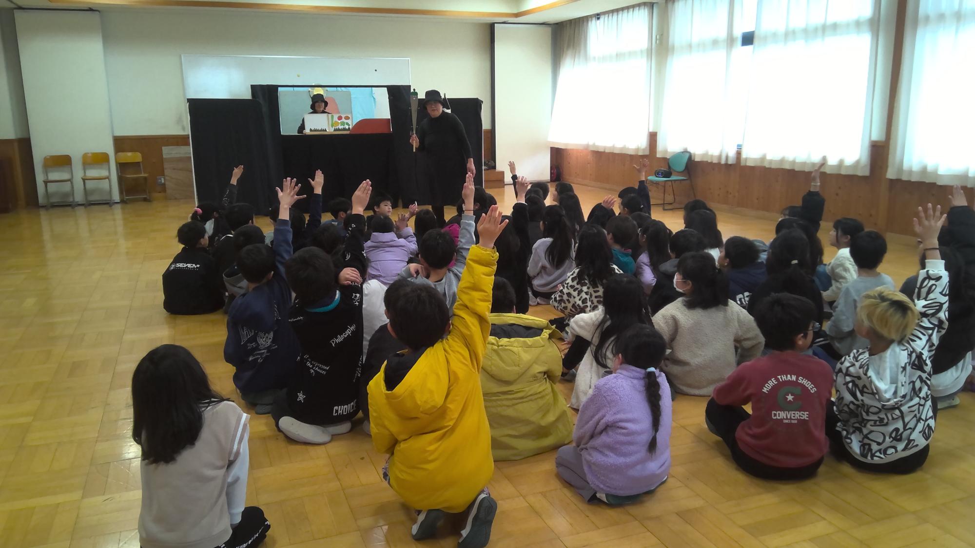 2日間にわたって、地域の「てくてく一座」のみなさんによる人形劇が行われました。1年生から4年生まで、「てくてく一座」の皆さんと、人形劇や手遊びなどをして楽しい時間を過ごすことができました。