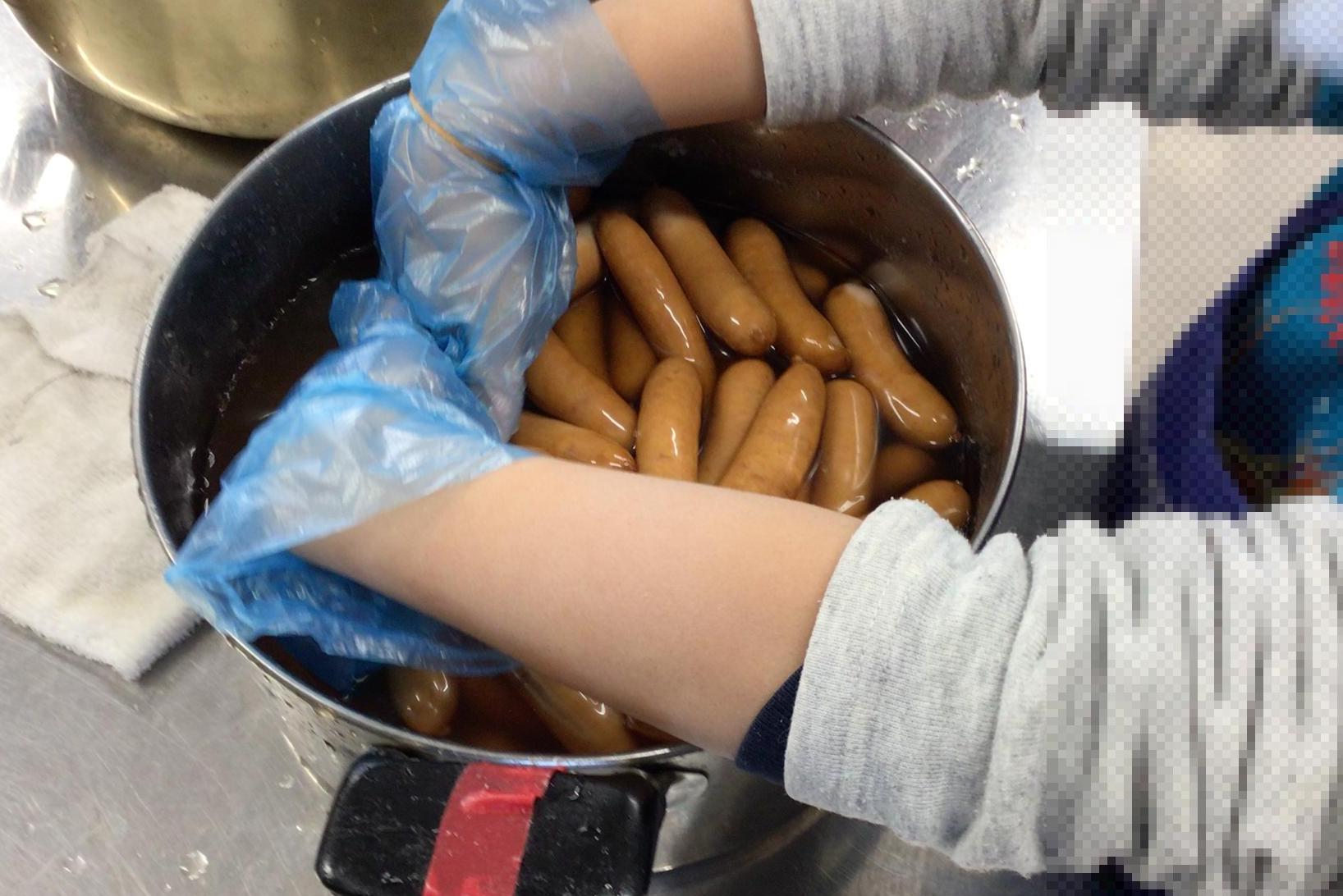 ウインナーは弾けないように見た目に注意しました。