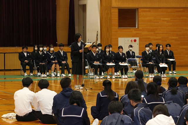 3学期始業式を行いました。年末に受賞した表彰を紹介した後、各学年の代表が新年の抱負を発表しました。