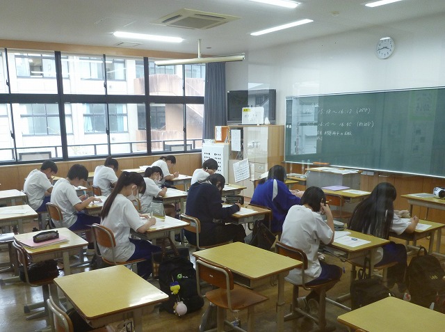 1学期末テスト。1年生にとっては初めての定期テストで少し緊張しながらも集中して解いていました。