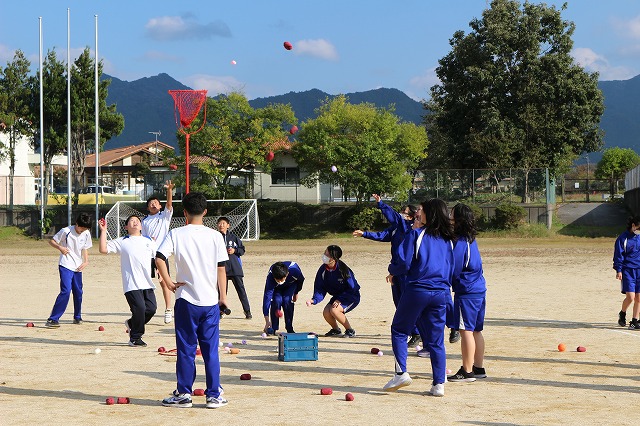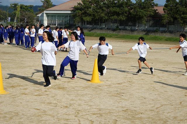 10月30日の体育大会に向けて練習にも熱が入っています。今年も縦割りの団を編成し、団の競技練習を行っています。1年から3年が1つになって頑張る姿が輝いていました。