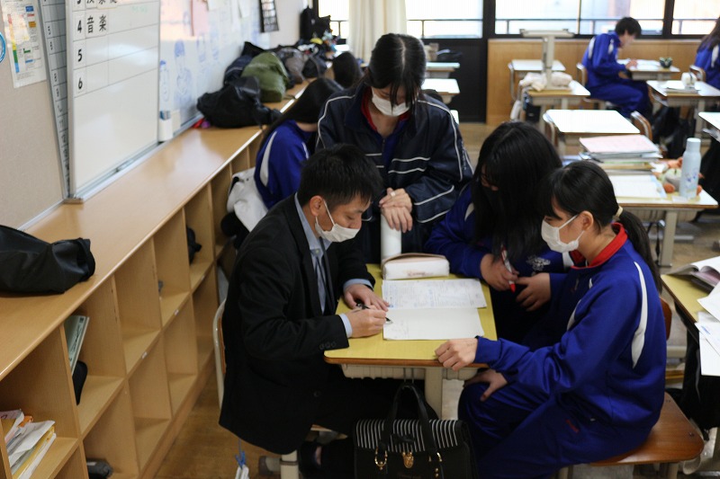 1学期末テストに向けて、各学年では補充学習をしてます。教員に交じって地域ボランティアの方も教えてくださっています。とても助かります。