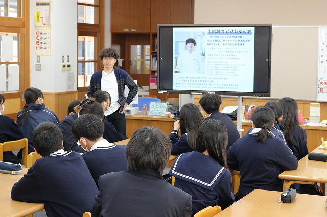 愛荘町地域おこし協力隊の土肥さんを講師にお招きして、進路学習をしました。