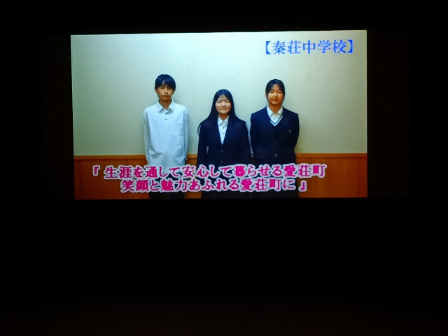 町制20周年式典が開催されました。本校と愛知中の代表者が町民憲章を唱和したり、祝いを込めて作成したビデオメッセージを流しました。