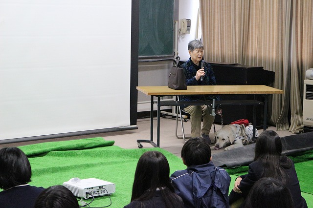 今回は盲導犬ユーザーの山野さんを講師にお招きし、見えないことについて。困ること。困らないこと。気を付けること。私たちにできること。など。