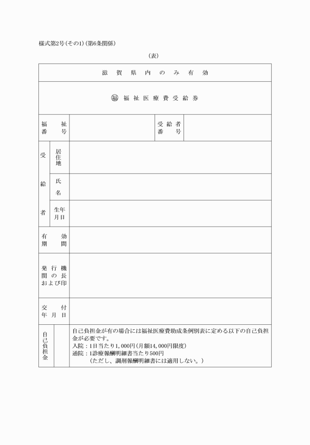 2 助成対象者が、滋賀県外の保険医療機関において医療給付を受けたとき、または医療保険各法の規定に基づく医療費もしくは療養費に相当する家族療養費の支給の対象となる医療の給付を受けたときで、前項の申請をしようとする場合には、医療保険各法の規定に基づき、保険者または共済組合の当該医療に要した費用に関する療養費もしくは療養費に相当する家族療養費の支給決定通知書またはこれに代わる証明書を添えて行うものとする。