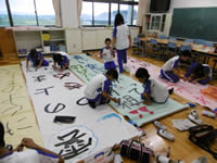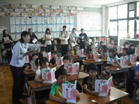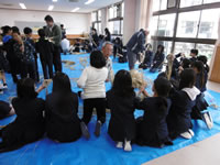 ![]() 1年生と来年度入学する保育園幼稚園の園児とが交流会をおこないました。最初各お店の説明をしたあと、木の実で作ったおもちゃで遊んだりプレゼントしたりとお兄さんお姉さんになって、はりきって園児たちとの交流を深めていました。 |