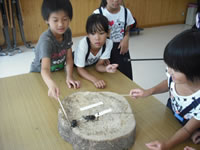 ![]() 古墳の中に入る 火おこし体験 6年生が上蚊野古墳公園に行き、校外学習を行いました。直径15mの円形の古墳は石室内も見学でき、内部の壁に触ったり出土した土器を手にしたりして学習しました。また、火おこしの体験も行いました。 |