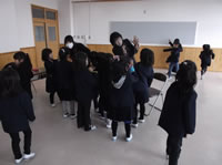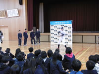 ![]() 3名のフルート奏者の方にお越しいただき演奏会を行いました。美しい音色が体育館中に響きわたり、すばらしい時間をすごしました。 |